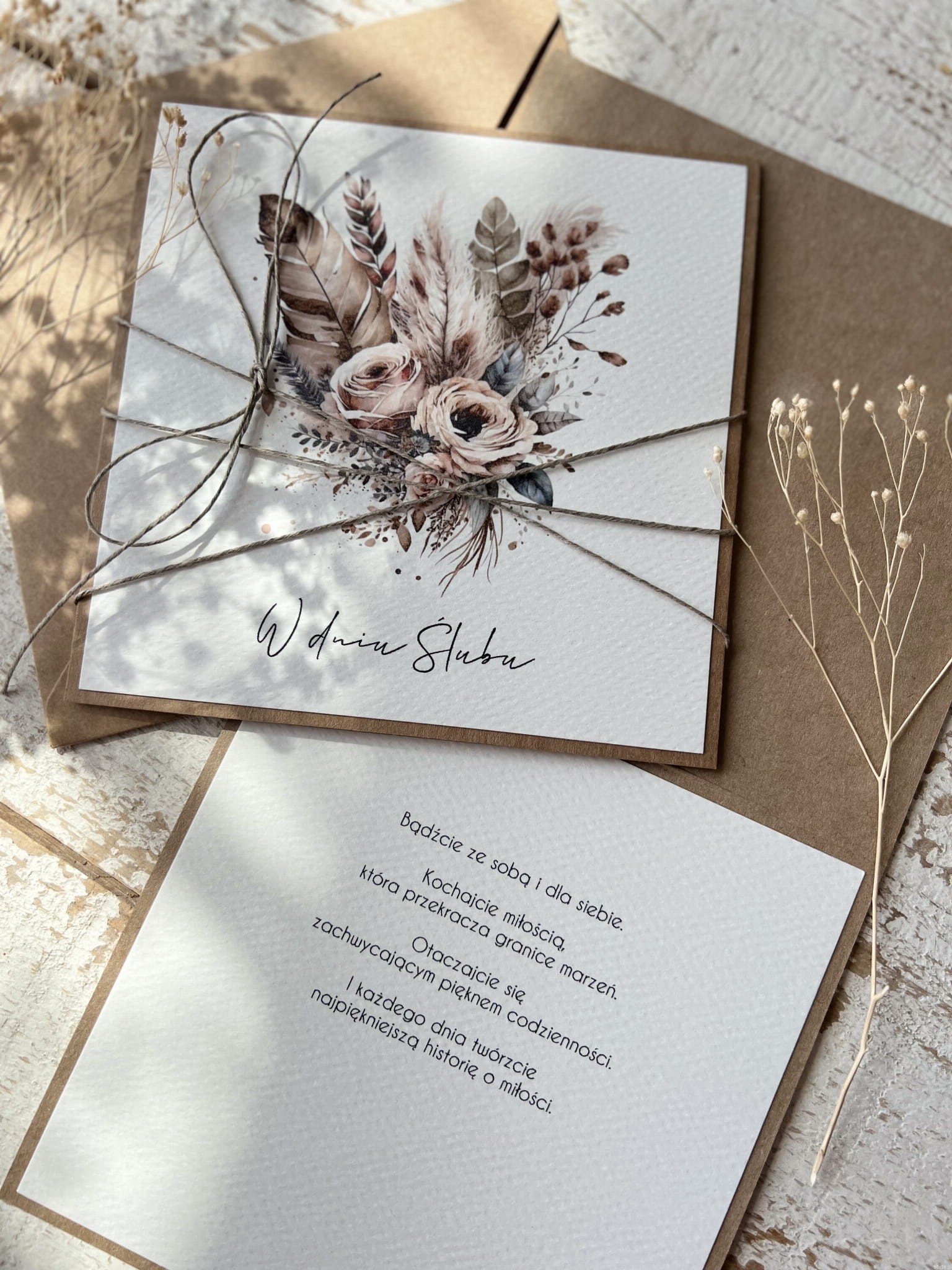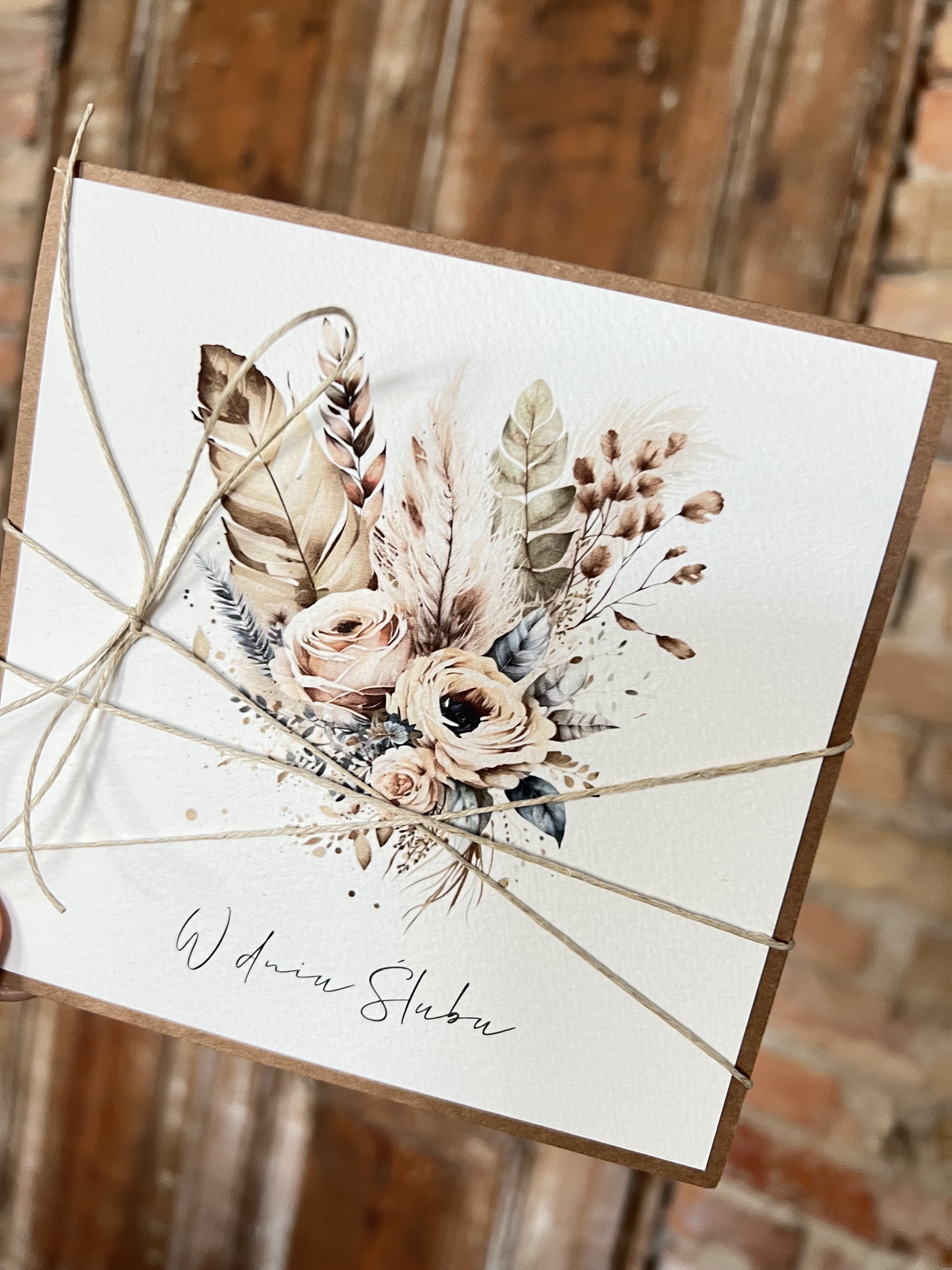 Wyjątkowa Kartka ślubna boho, życzenia na ślub Młodej Parze, idealny dodatek do prezentu ślubnego - bilet