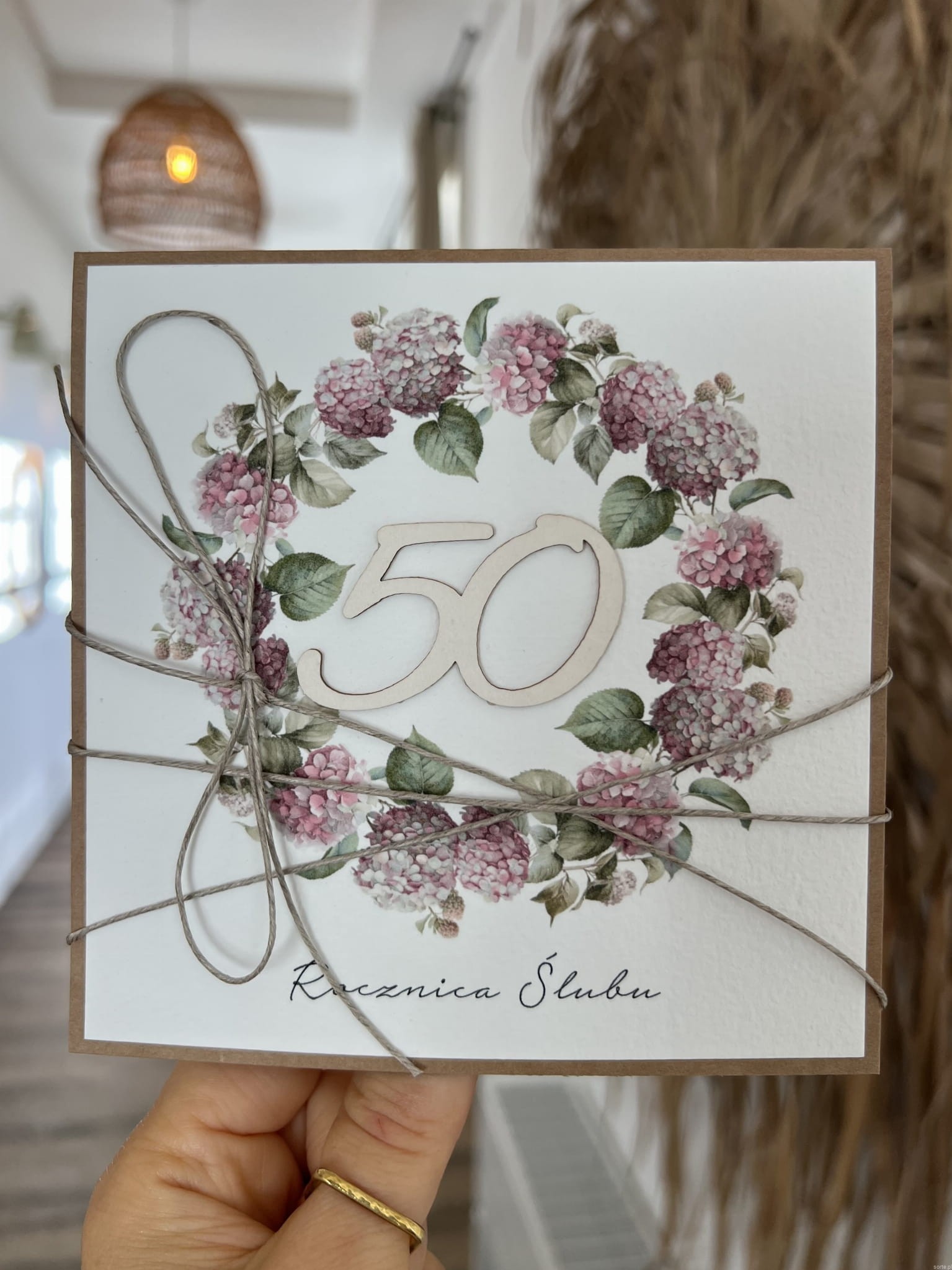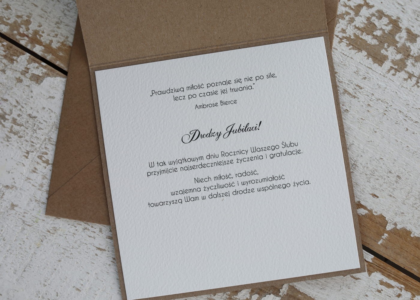 Rustykalna kartka życzenia z okazji 50. rocznicy ślubu - pięćdziesiąta rocznica ślubu - pomysł na prezent