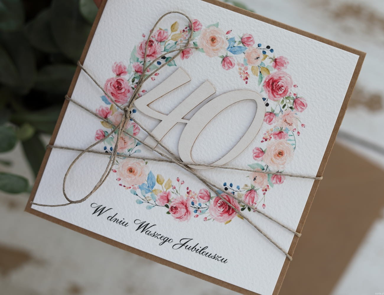 Rustykalna kartka życzenia z okazji 40. rocznicy ślubu - czterdziesta rocznica ślubu - pomysł na prezent