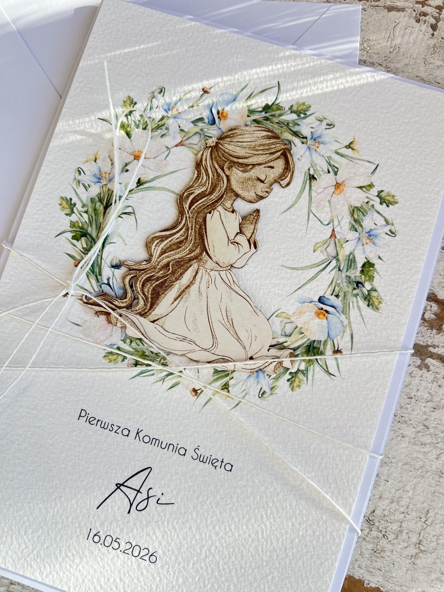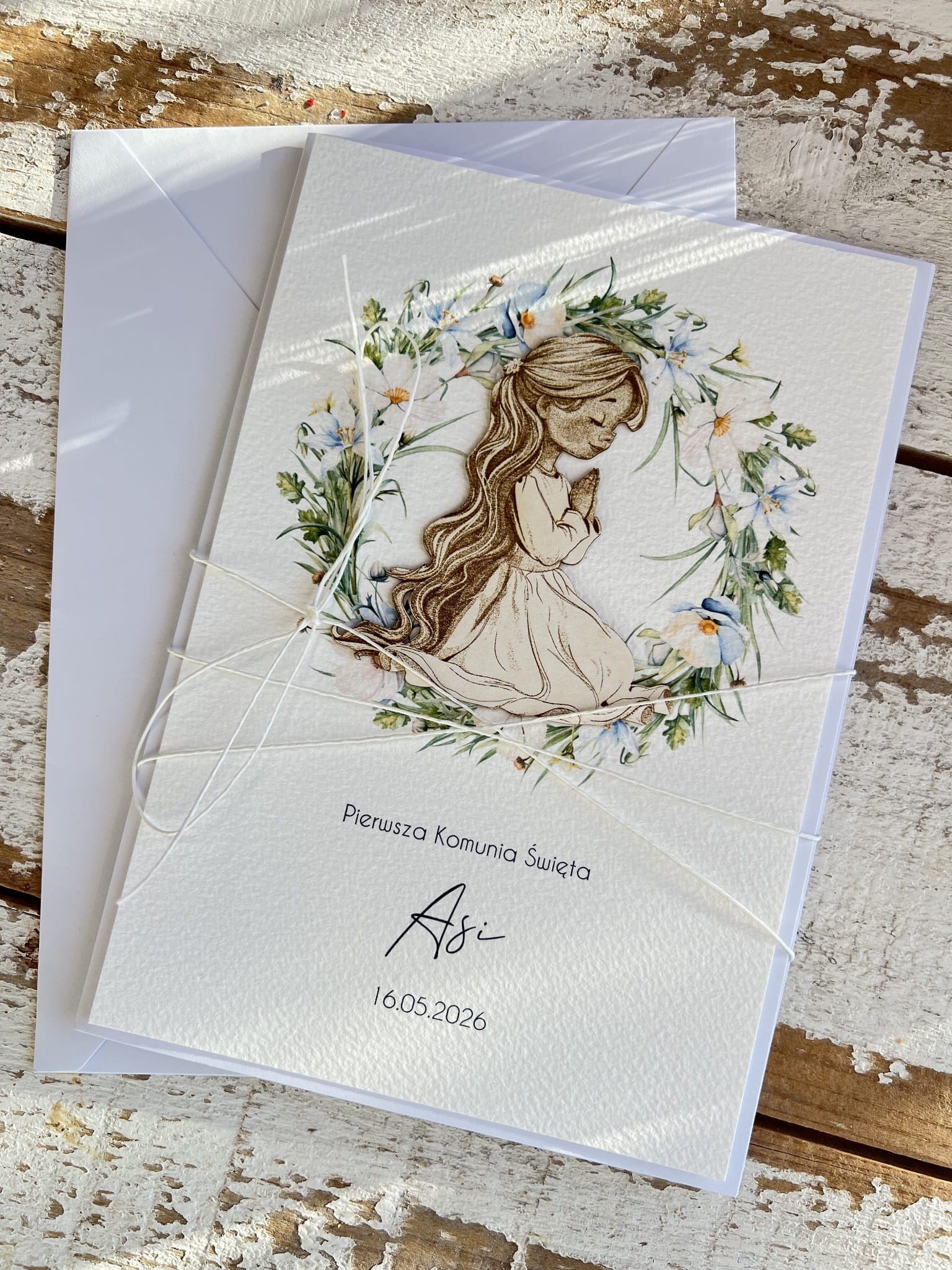 Kartka komunijna ręcznie robiona z imieniem od matki chrzestnej, ojca chrzestnego, babci, dziadka - pamiątka komunii - prezent na komunię od rodziców - przepiękne życzenia komunijne od serca dla dziewczynki A5 prezent komunijny