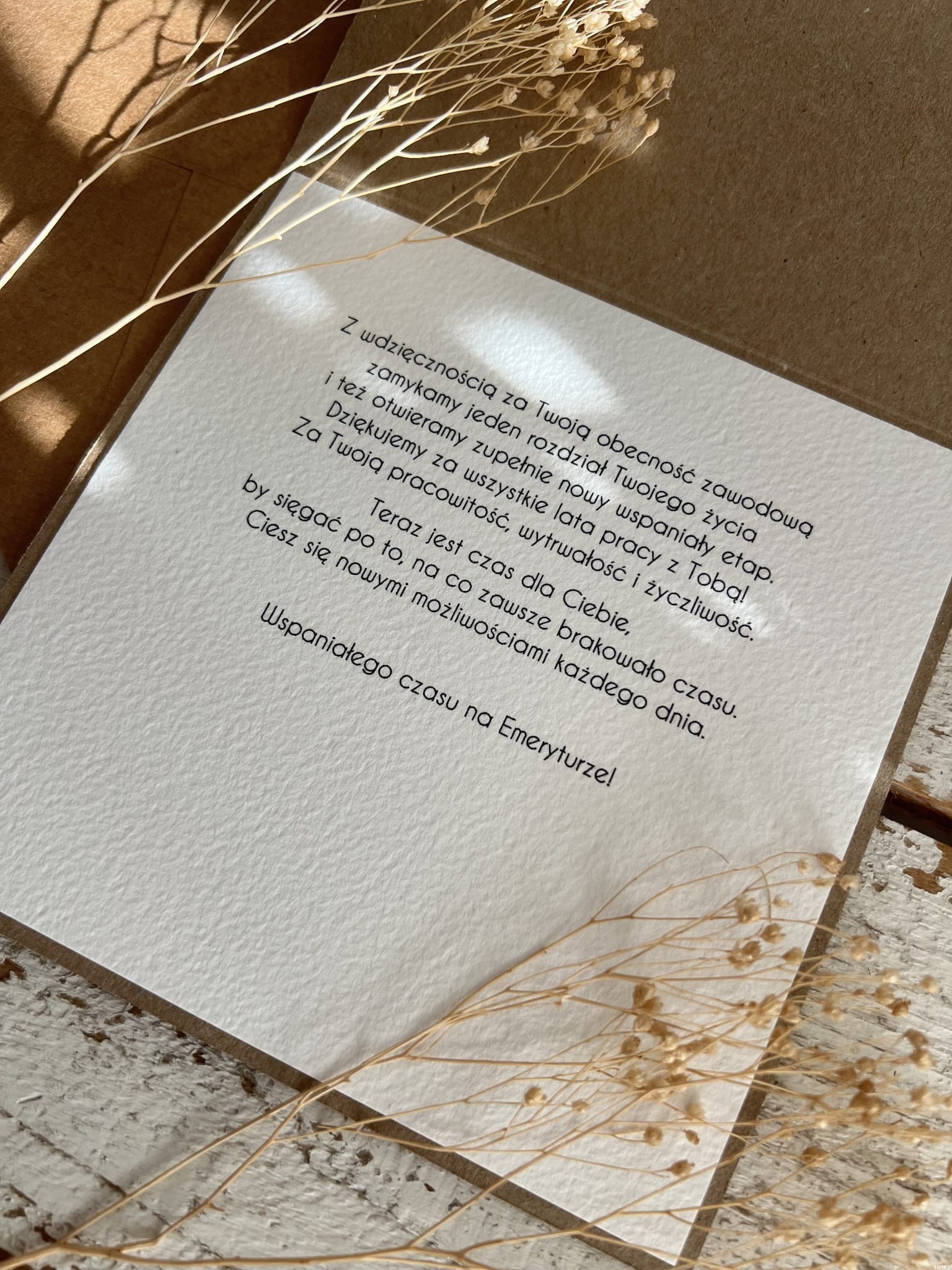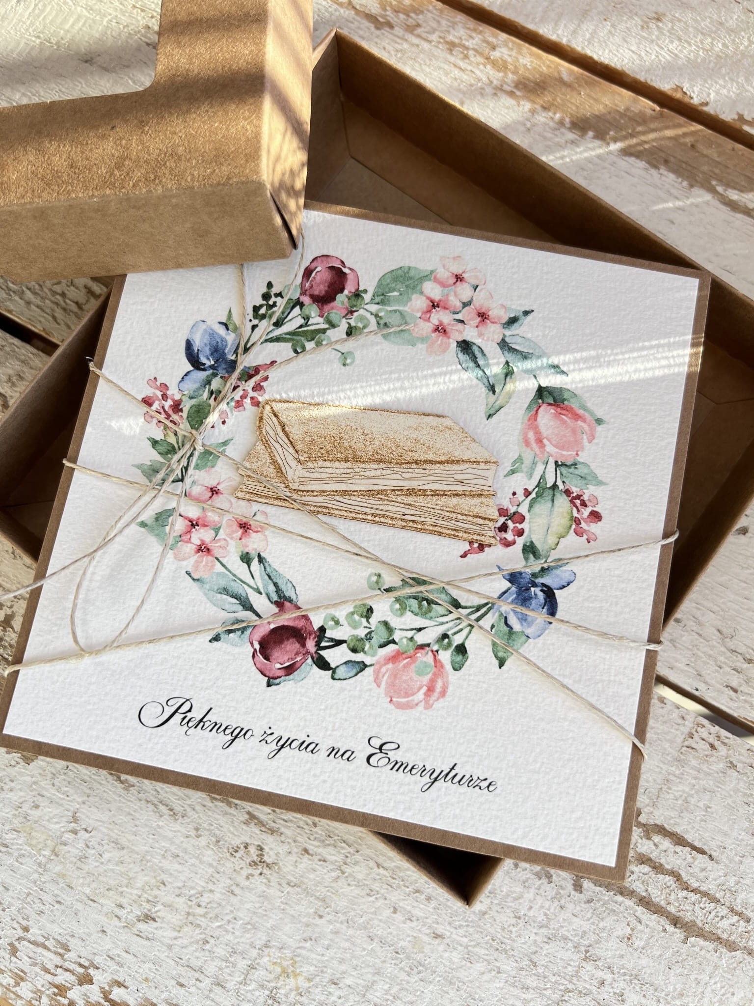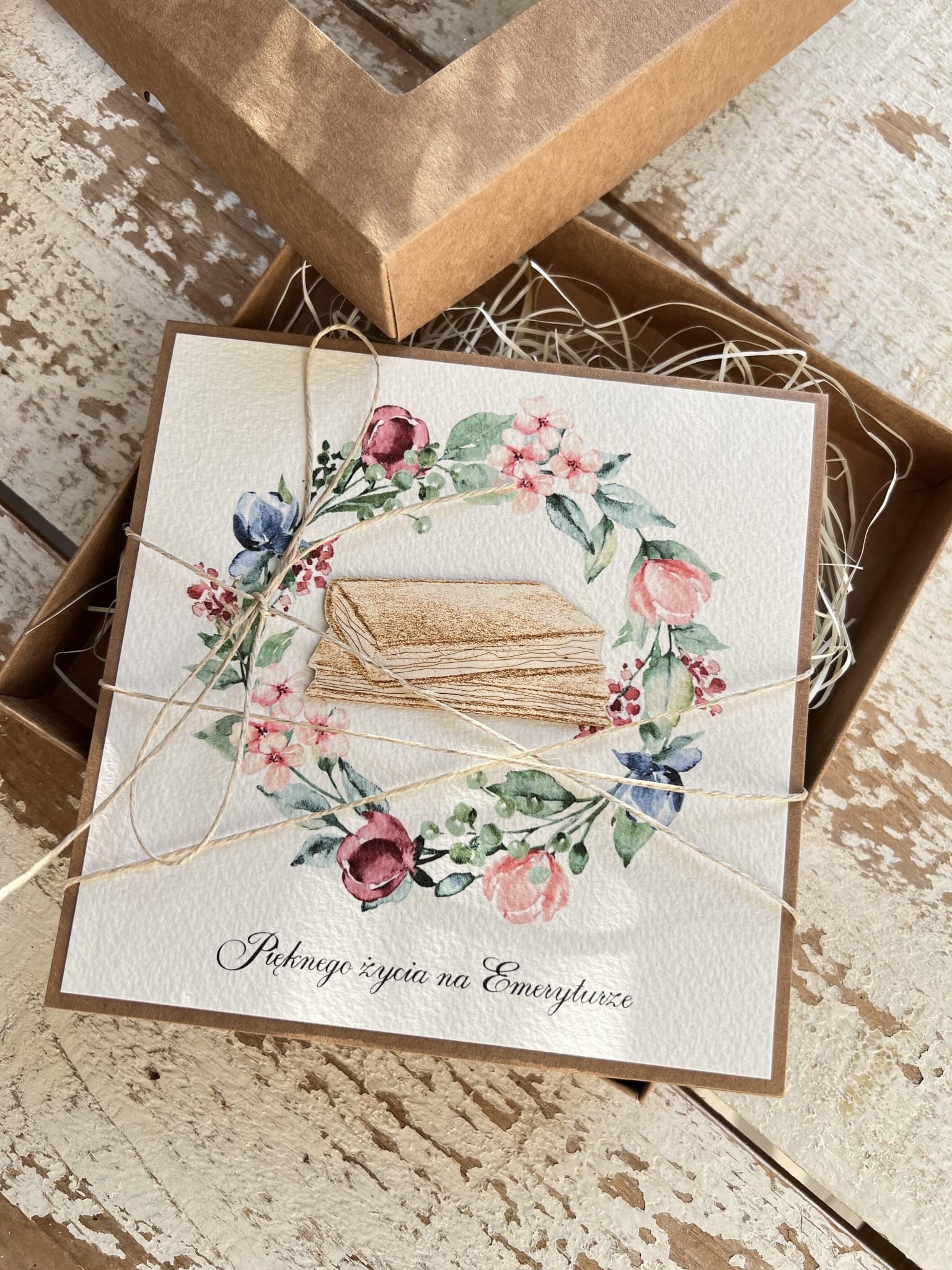 Kartka - gratulacje dla emeryta, na emeryturę - ręcznie robiona w pudełku - prezent od firmy