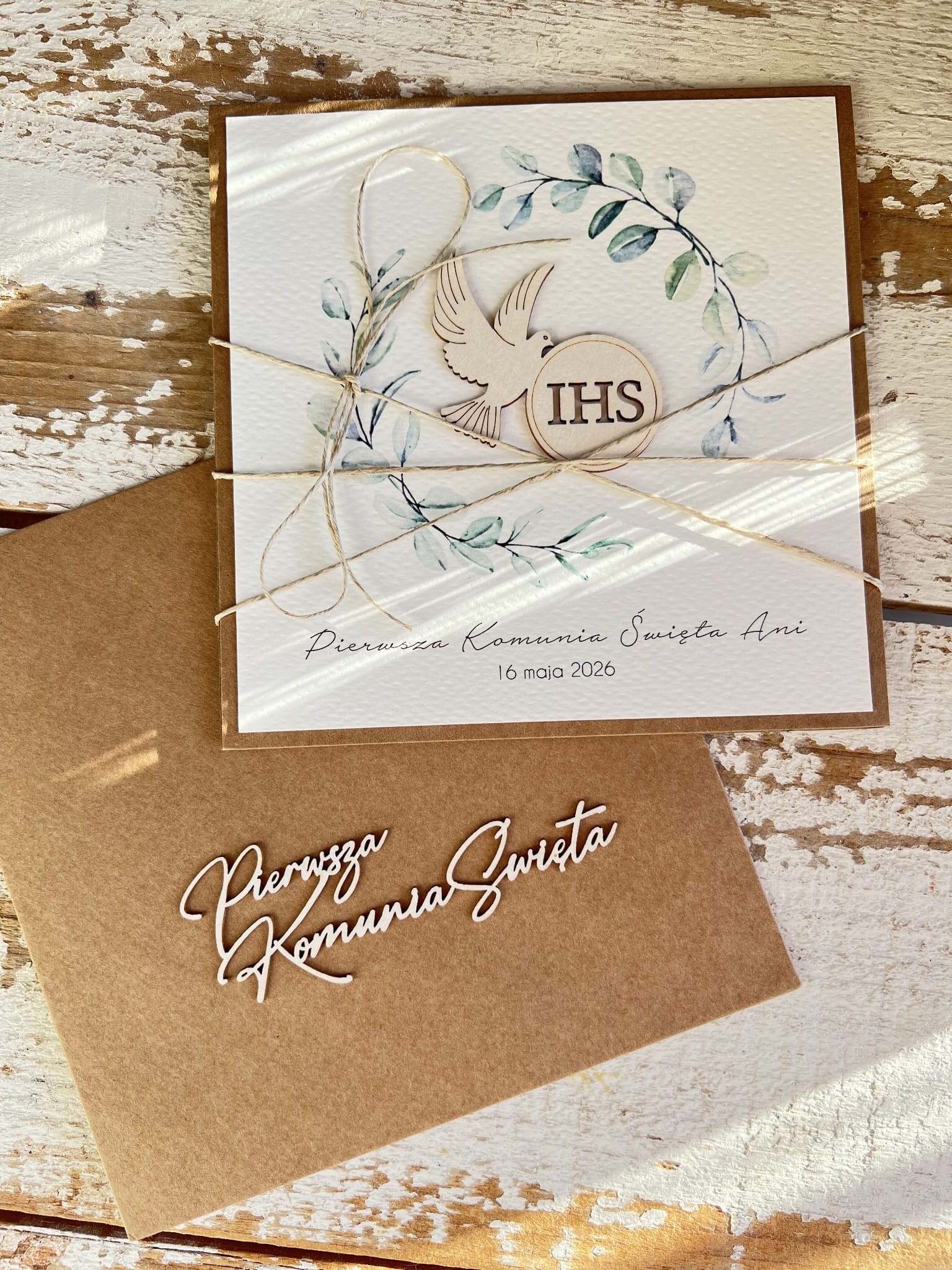 Kartka komunijna ręcznie robiona z imieniem od matki chrzestnej, ojca chrzestnego, babci, dziadka - pamiątka komunii - prezent na komunię od rodziców - przepiękne życzenia komunijne od serca