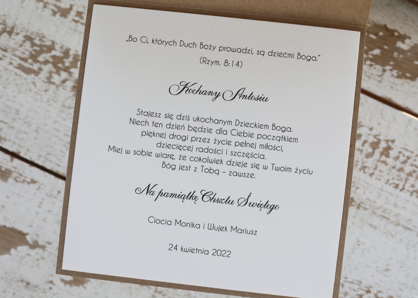 Ta personalizowana kartka to nie tylko kartka. To przejaw bliskości, miłości i dbałości. To wyraz ważności kogoś w naszym życiu. To możliwość stworzenia unikatowego prezentu, który będzie wyrazem emocji oraz podkreśli wyjątkowość maleństwa, przed którym chrzest.