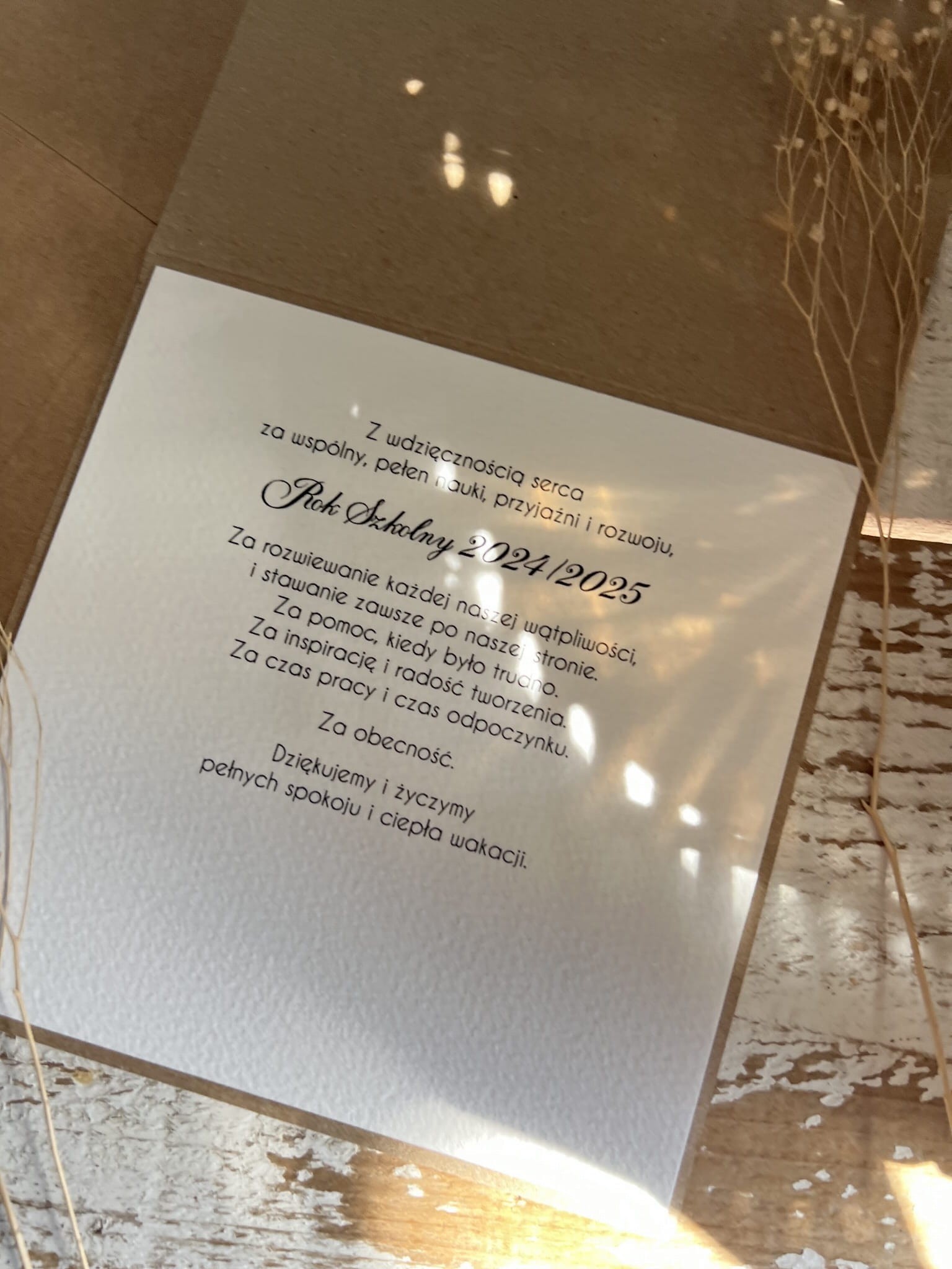 Kartka ręcznie robiona - Podziękowanie dla nauczyciela i życzenia na zakończenie roku szkolnego