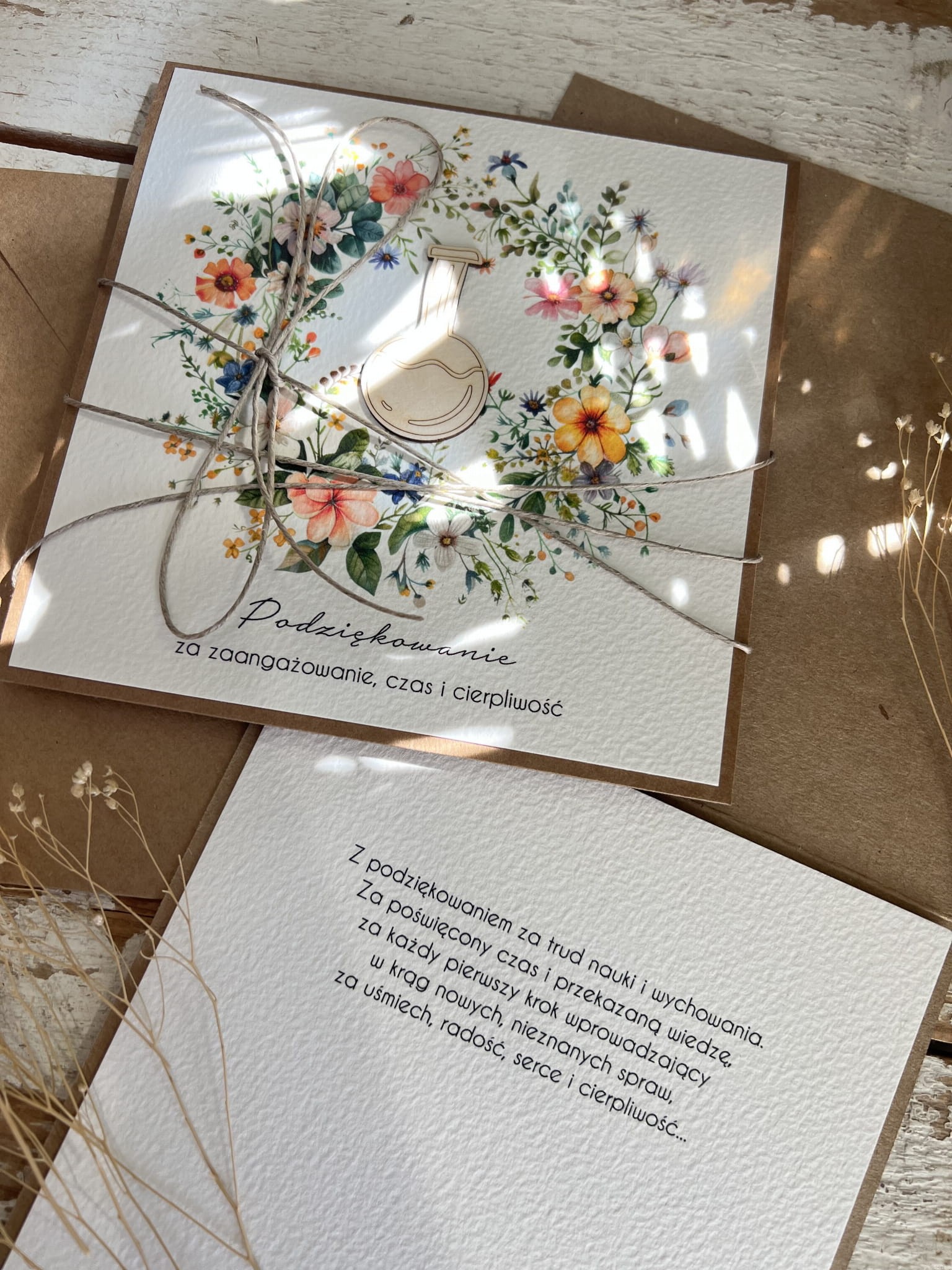 Kartka ręcznie robiona - Podziękowanie za dodatkowe lekcje chemii na zakończenie roku szkolnego - dla nauczyciela/korepetytora