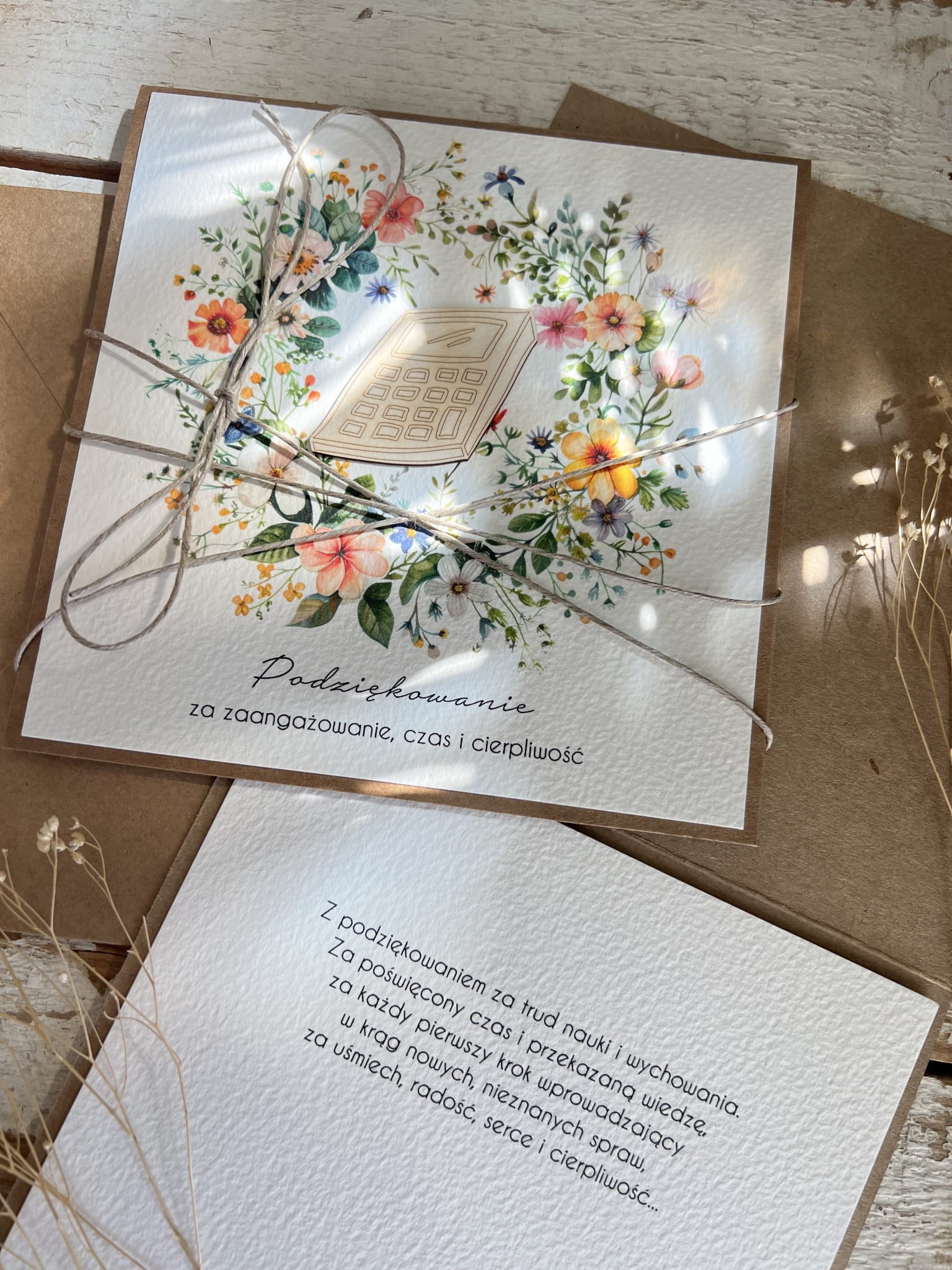 Kartka ręcznie robiona - Podziękowanie za dodatkowe lekcje matematyki na zakończenie roku szkolnego dla pani z matematyki - dla nauczyciela/korepetytora