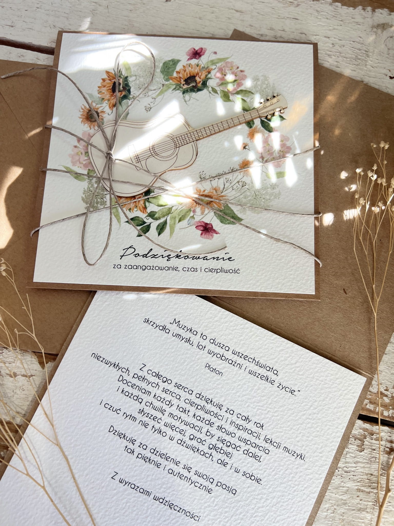 Podziękowanie za dodatkowe lekcje muzyki na zakończenie roku szkolnego dla pani z muzyki - lekcje gitary