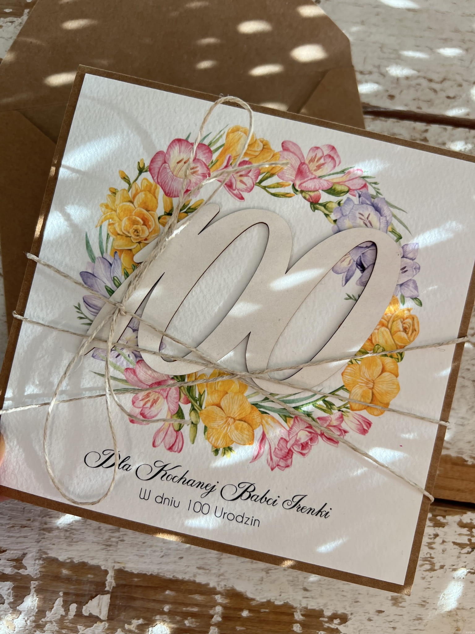 Kartka ręcznie robiona urodzinowa na 100 urodziny prezent z personalizacją