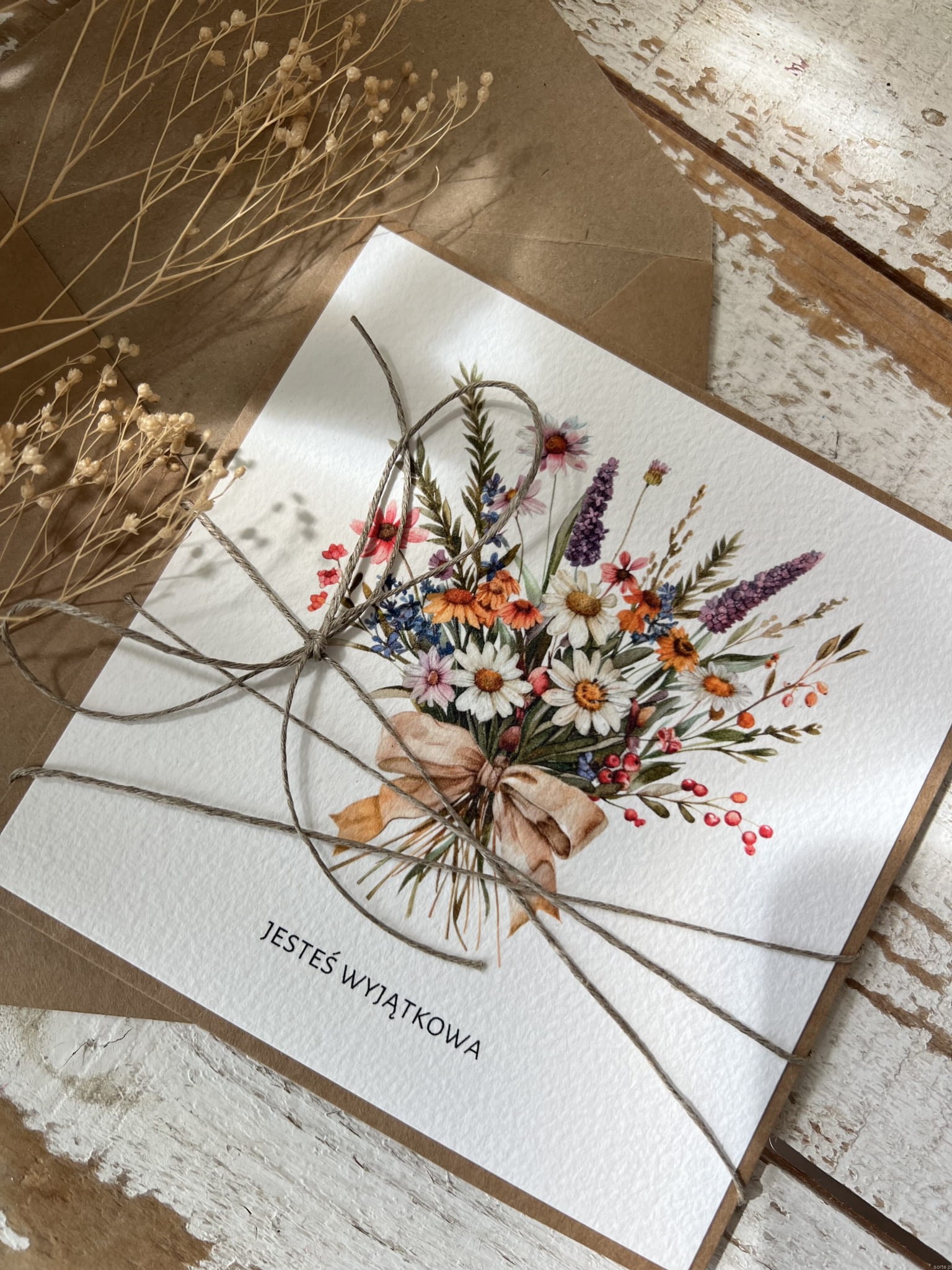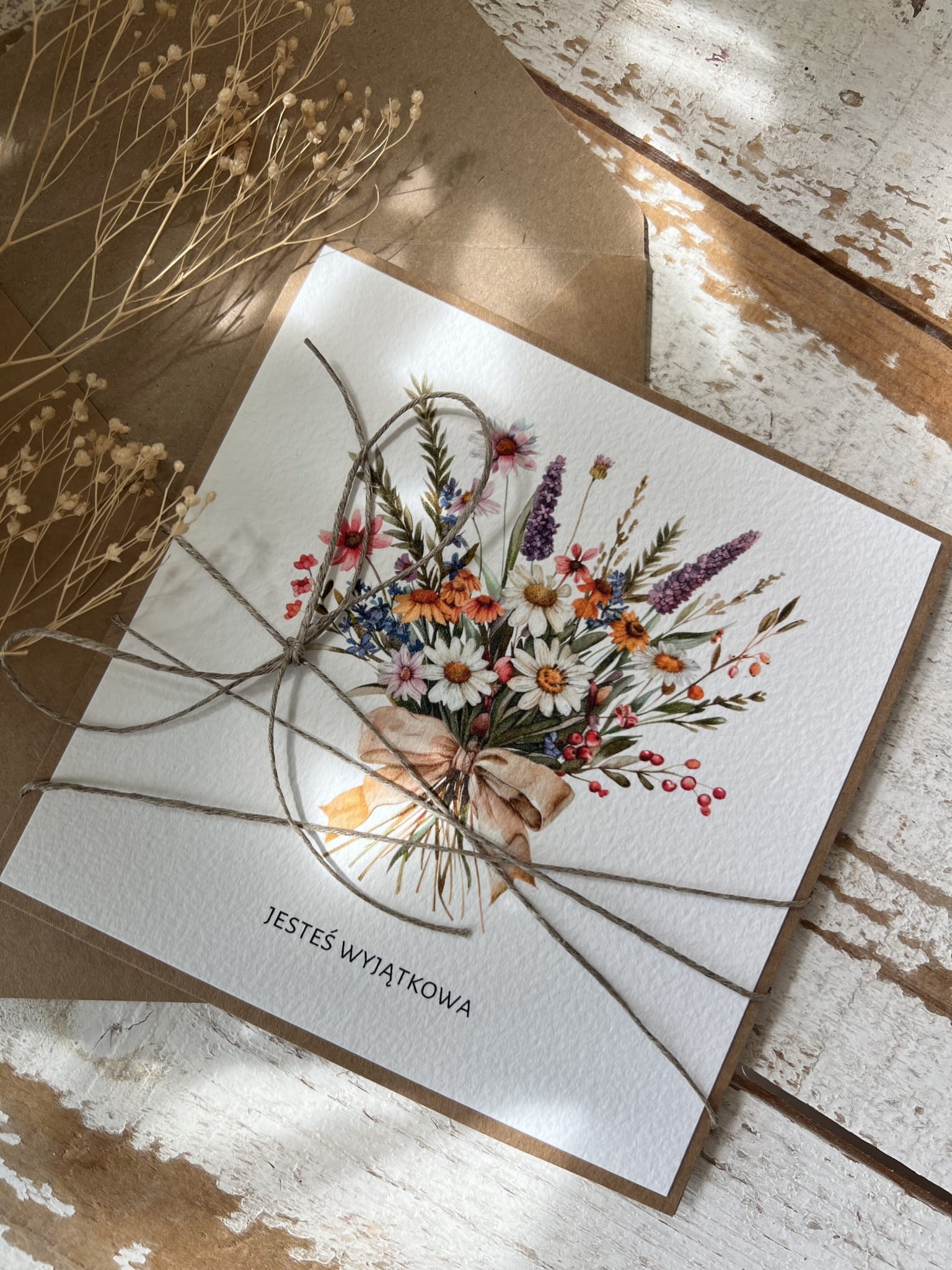 Kartka ręcznie robiona z bukietem Jesteś wyjątkowa