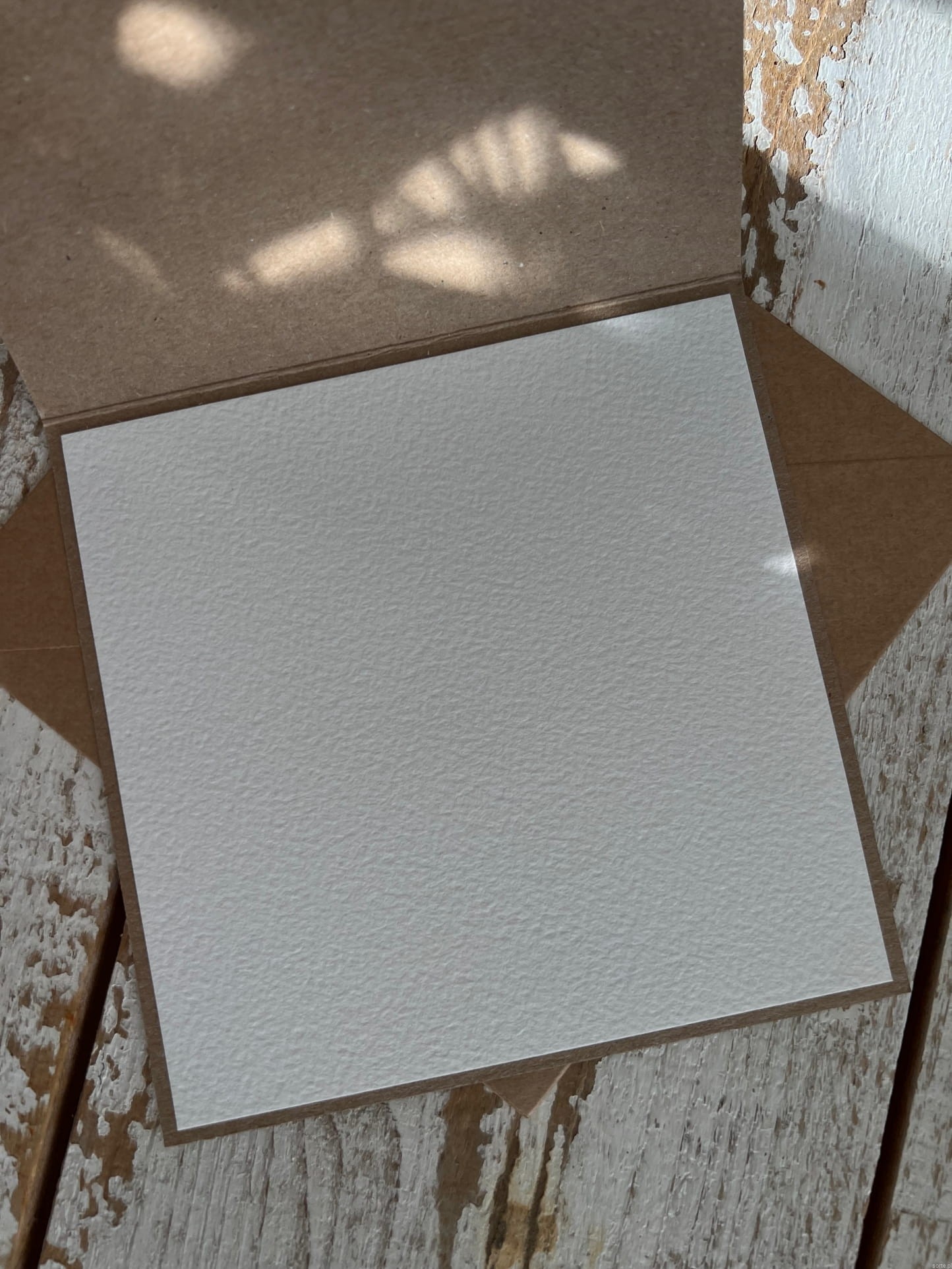 Wymiary: kartka 14x14cm otwierana do góry, przewiązana lnianym sznureczkiem w zestawie z brązową kopertą.