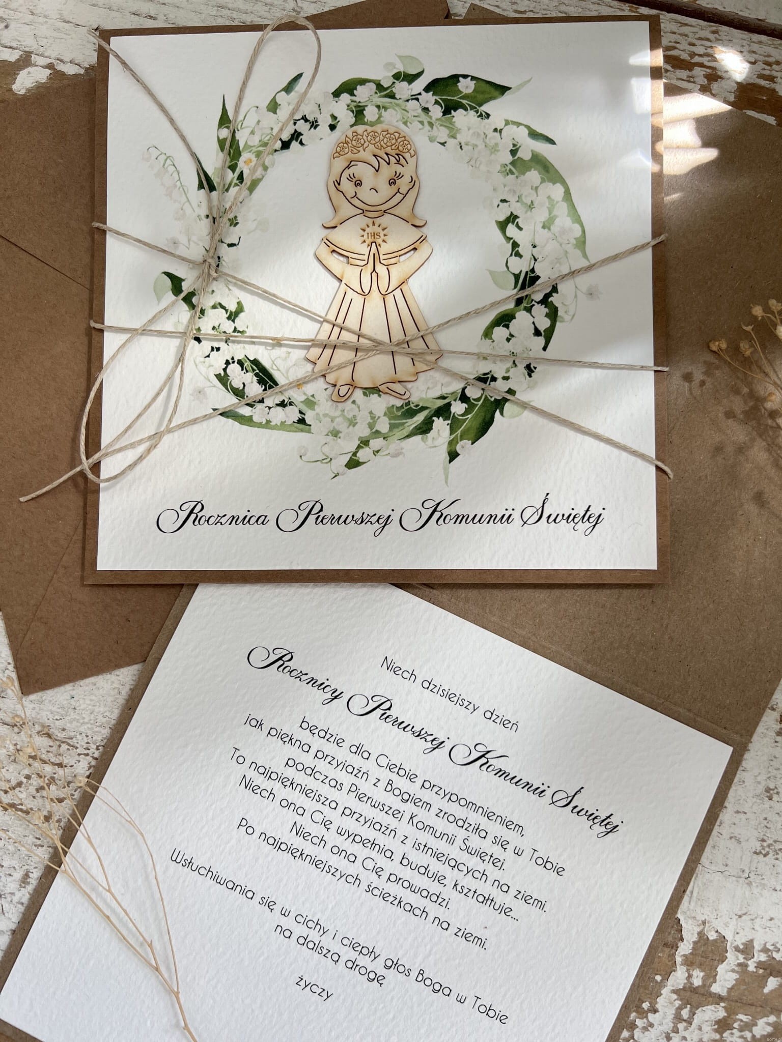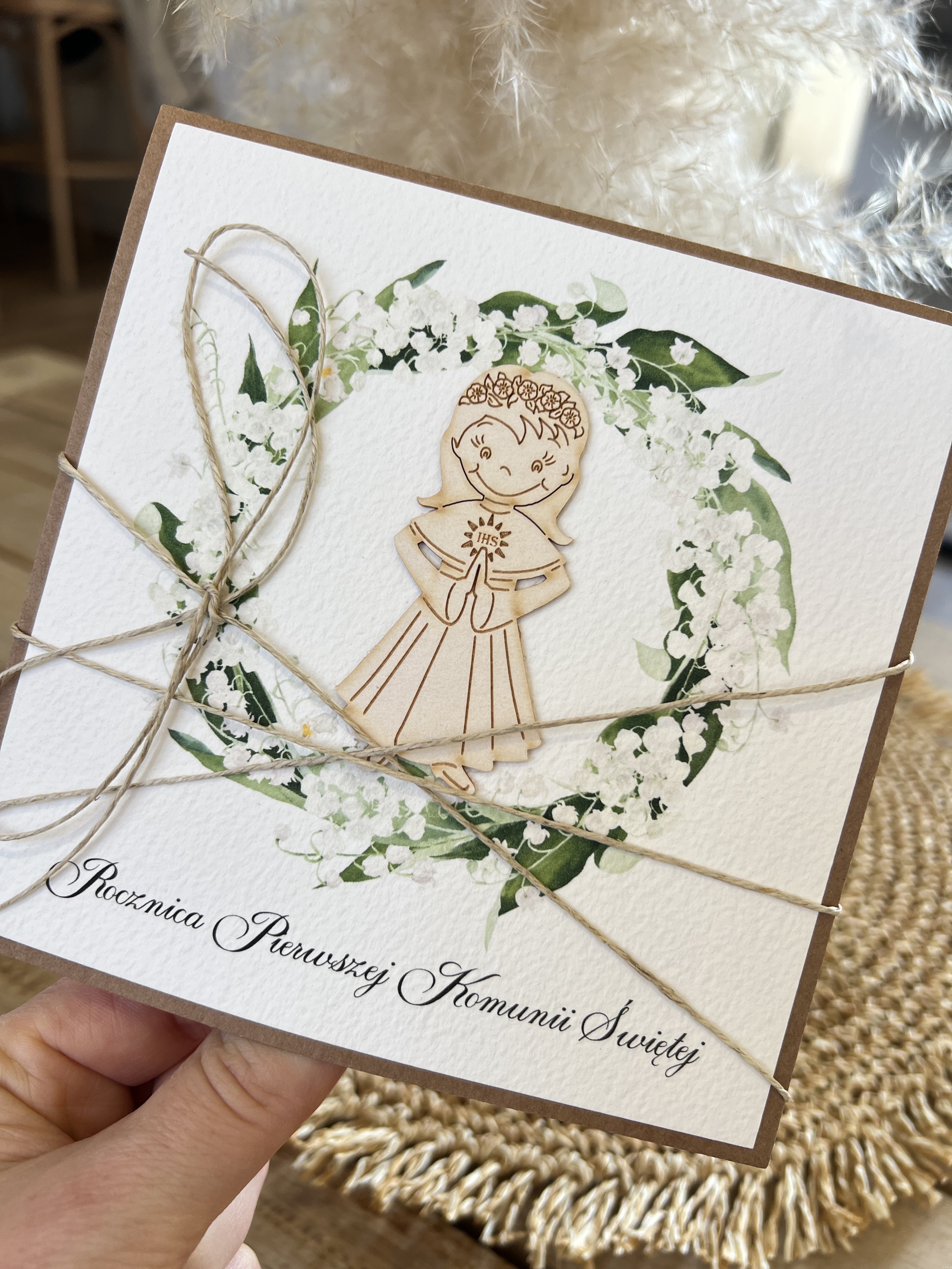 Kartka ręcznie robiona z okazji rocznicy komunii świętej - odnowienie przyrzeczeń, rocznica komunii - prezent dla dziewczynki