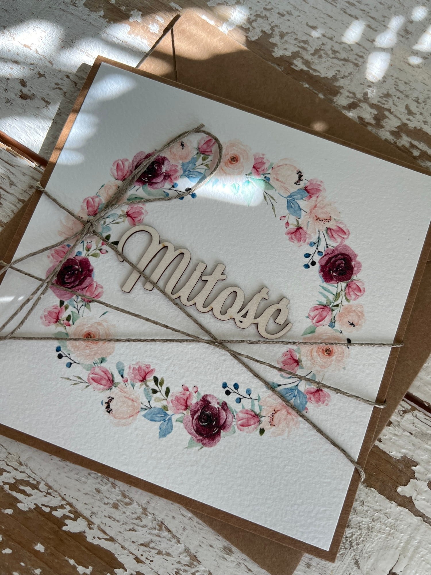 Kartka ślubna boho życzenia na ślub Miłość, idealny dodatek do prezentu ślubnego
