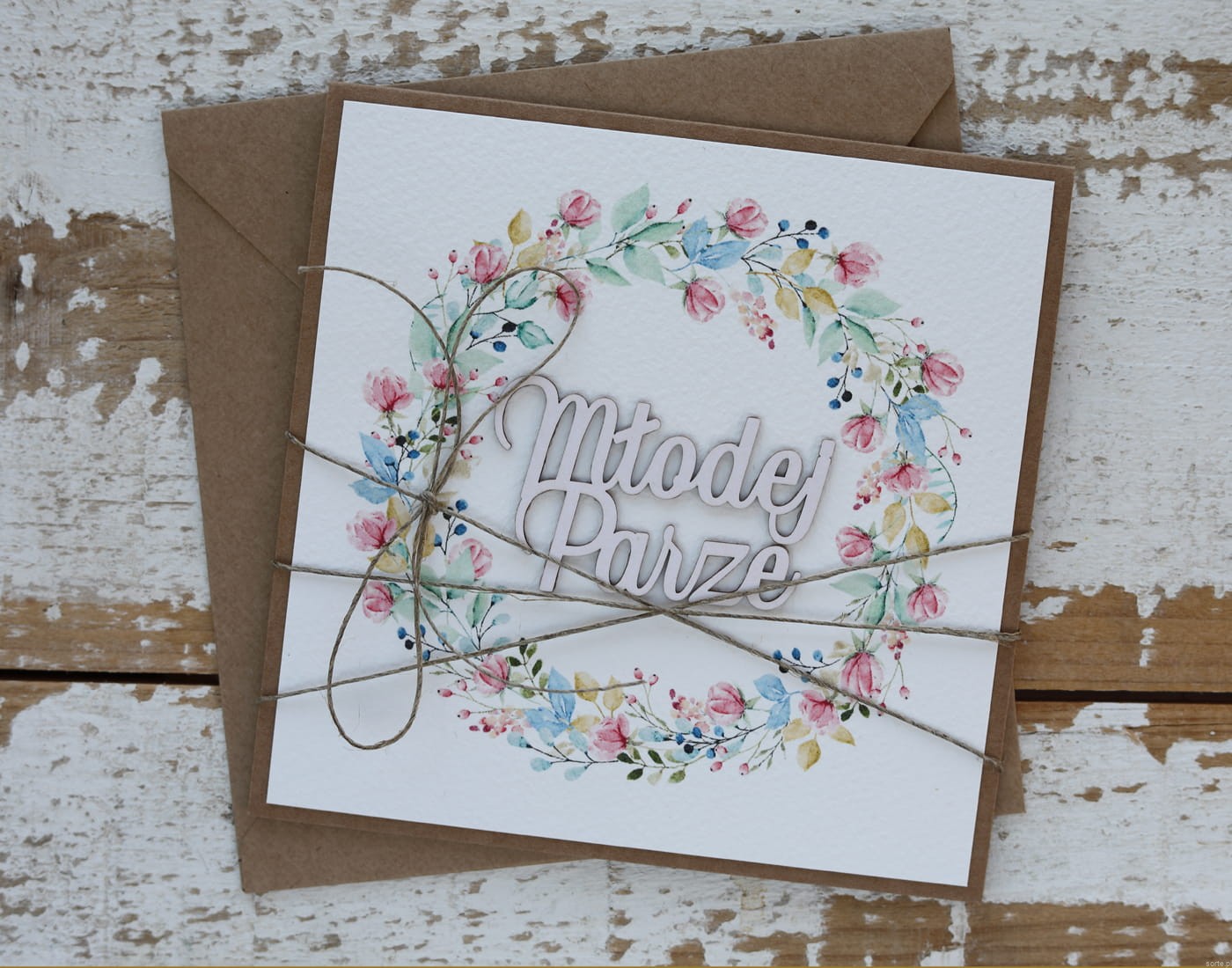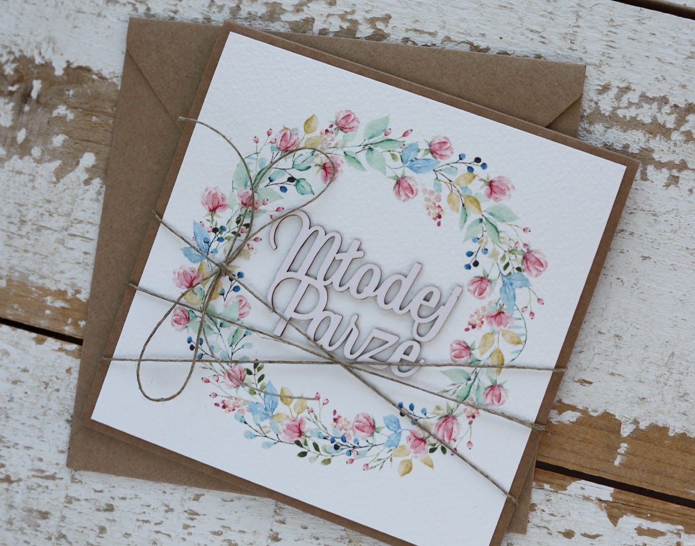 Kartka ślubna rustykalna, życzenia na ślub Młodej Parze, idealny dodatek do prezentu ślubnego
