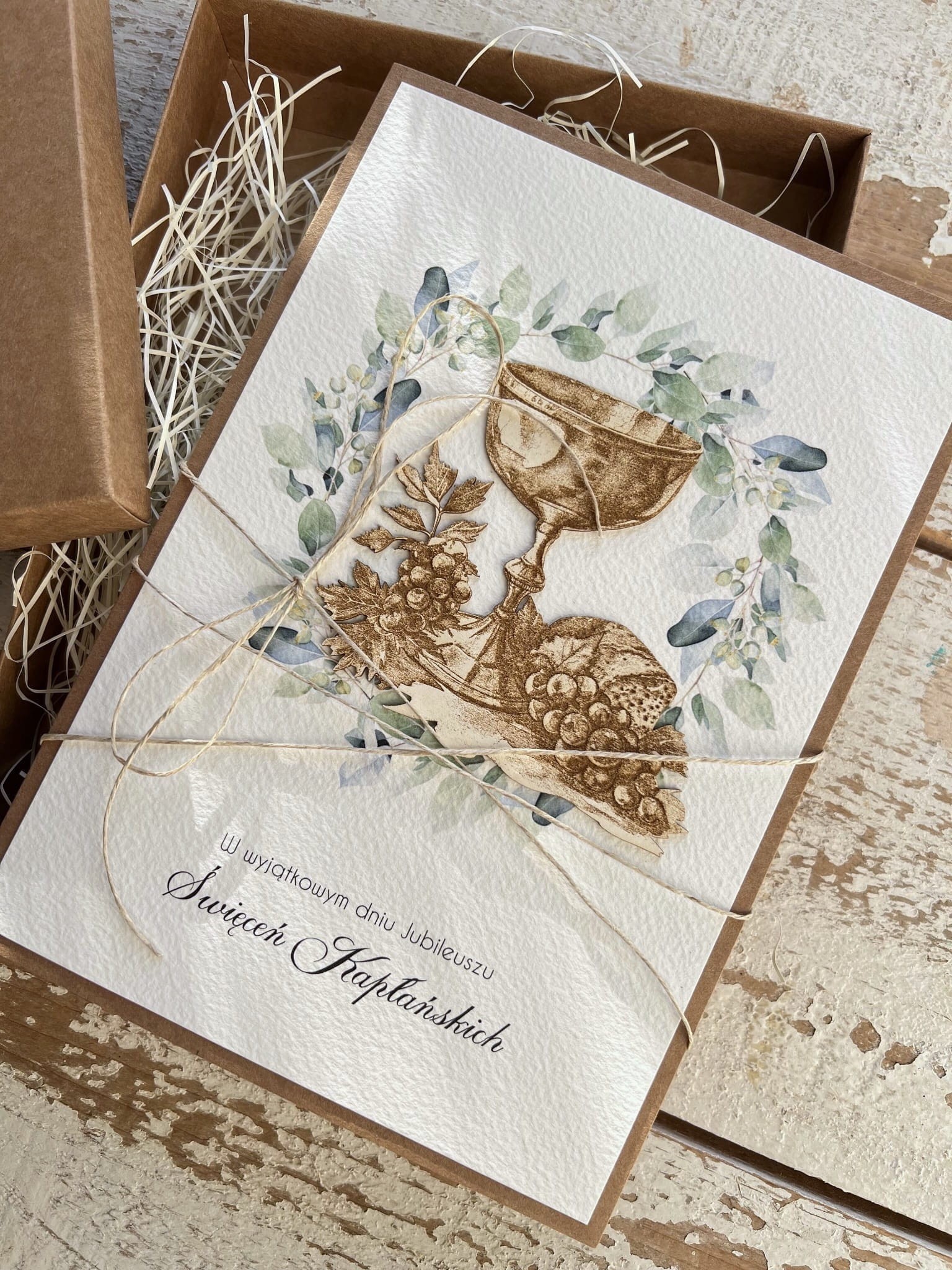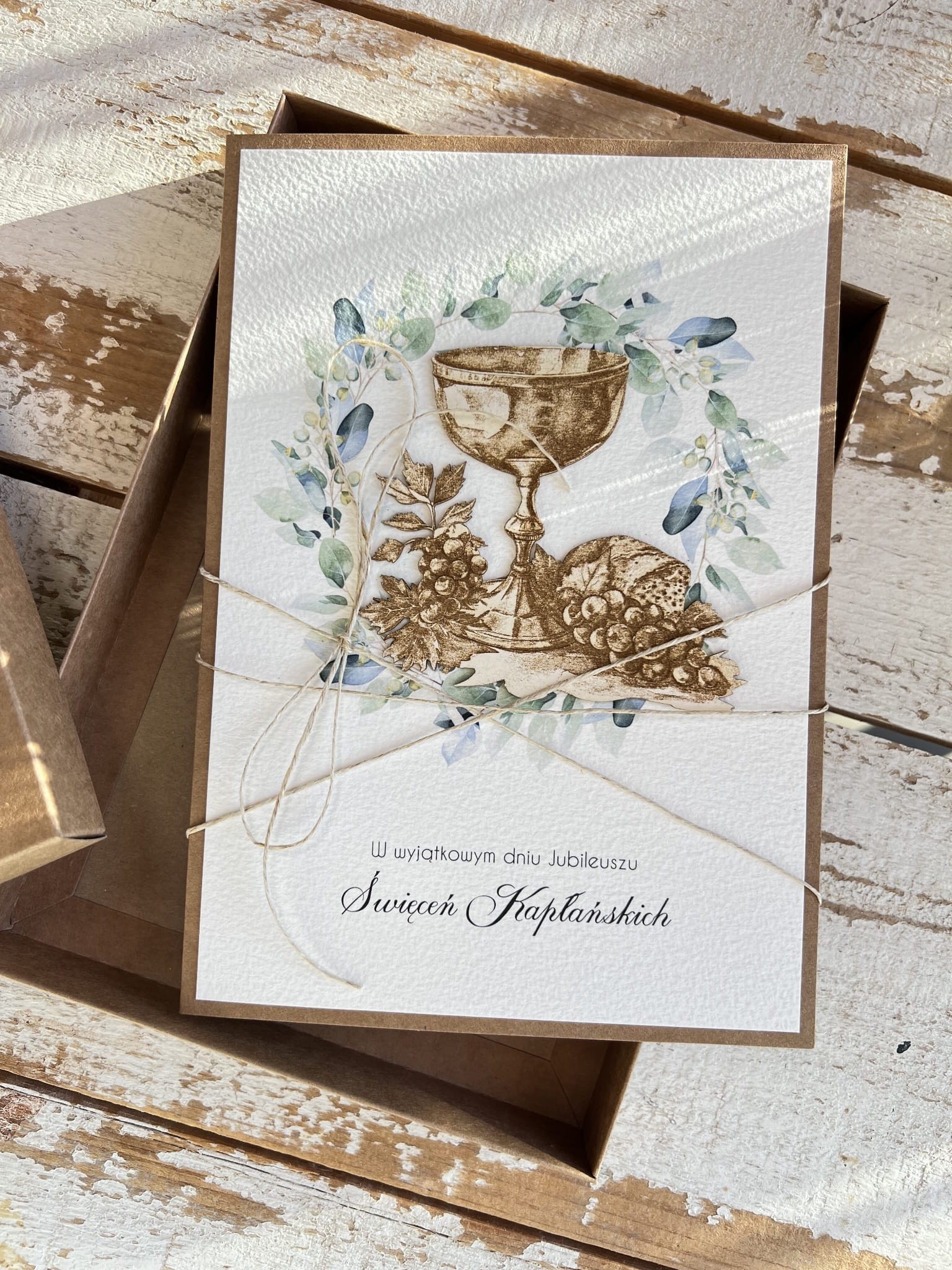 Kartka z okazji święceń kapłańskich z personalizacją ręcznie robiona z życzeniami A5 w pudełku - dla księdza, na prymicje, prezent