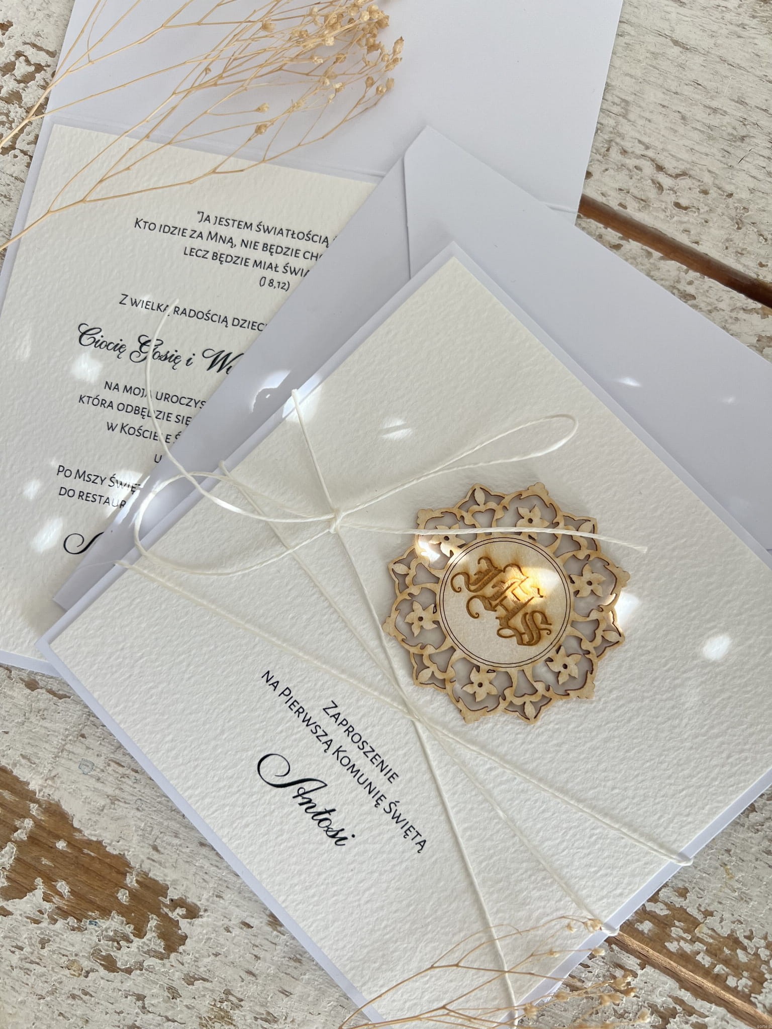 Wyjątkowe zaproszenia na komunię z pełną personalizacją wykonane z najwyższą dbałością o dobór materiałów oraz wykonanie.
