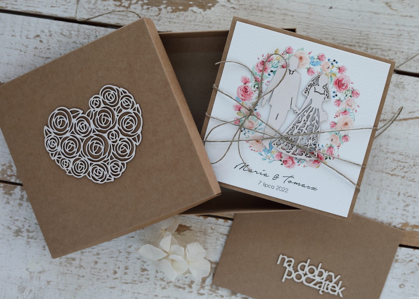 Kartka ślubna z pudełkiem z wiankiem, pomysł na prezent ślubny, koperta na pieniądze