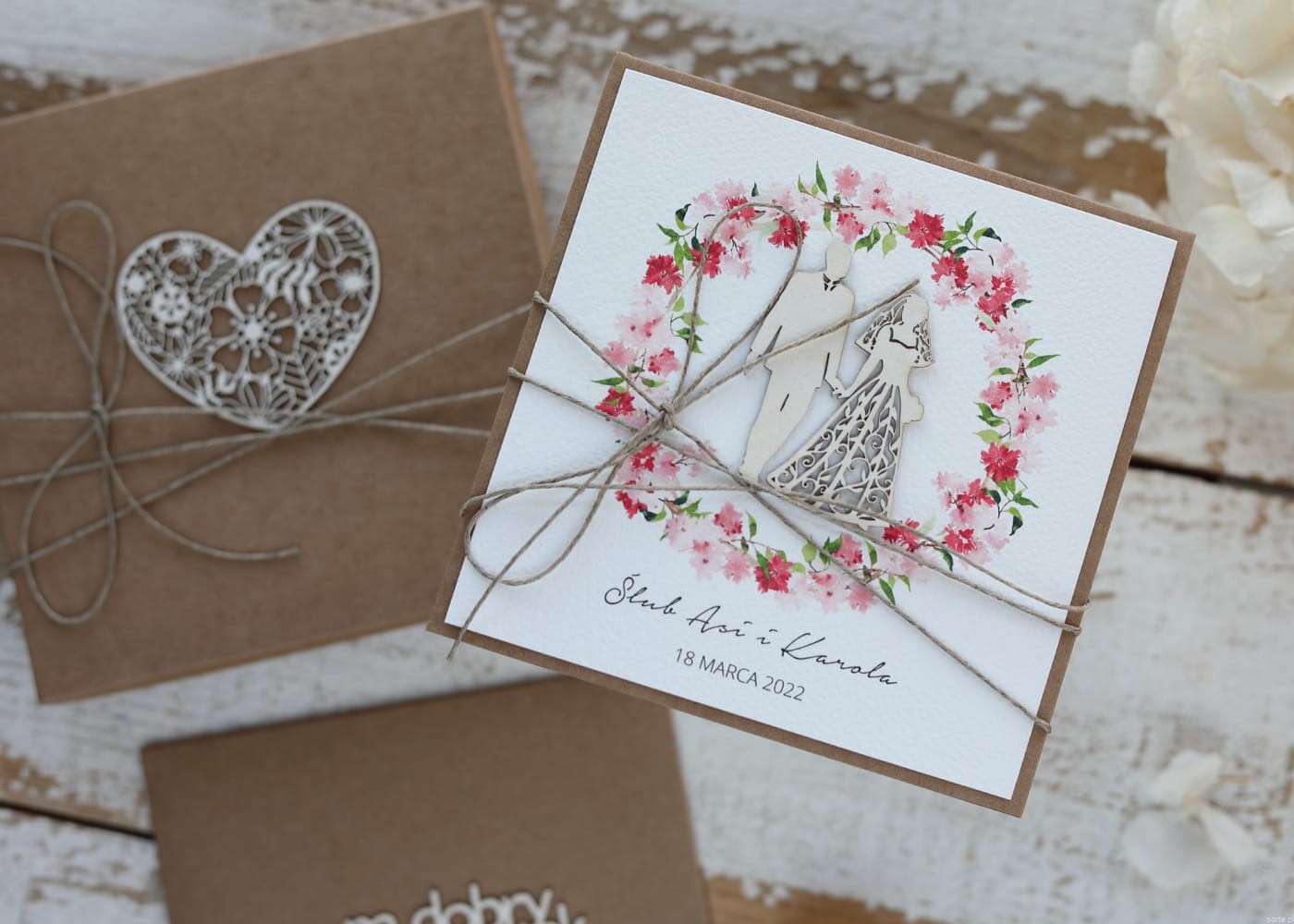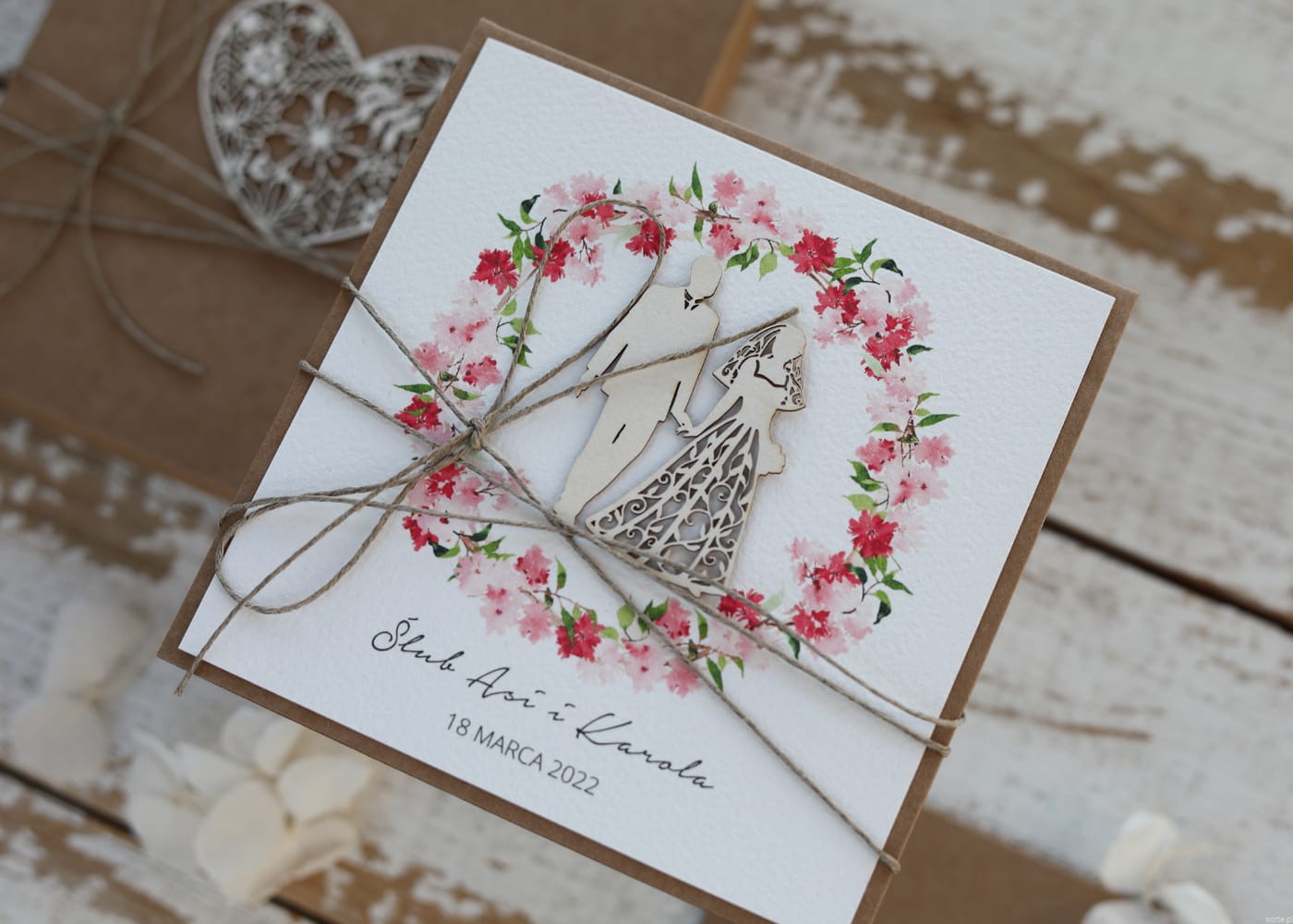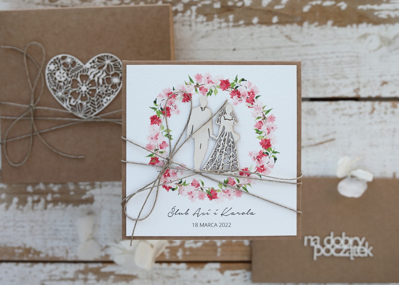 Oryginalna kartka ślubna z pudełkiem z wiankiem boho, pomysł na prezent ślubny + koperta na pieniądze Asia i Karol