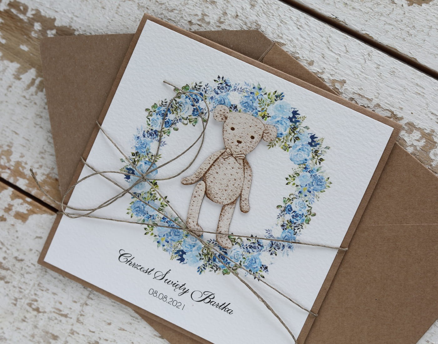 Oryginalna kartka z personalizacją na chrzest dla chłopca - pomysł na personalizowany prezent na chrzciny - pamiątka chrztu ręcznie robiona od matki chrzestnej, ojca chrzestnego + najpiękniejsze życzenia