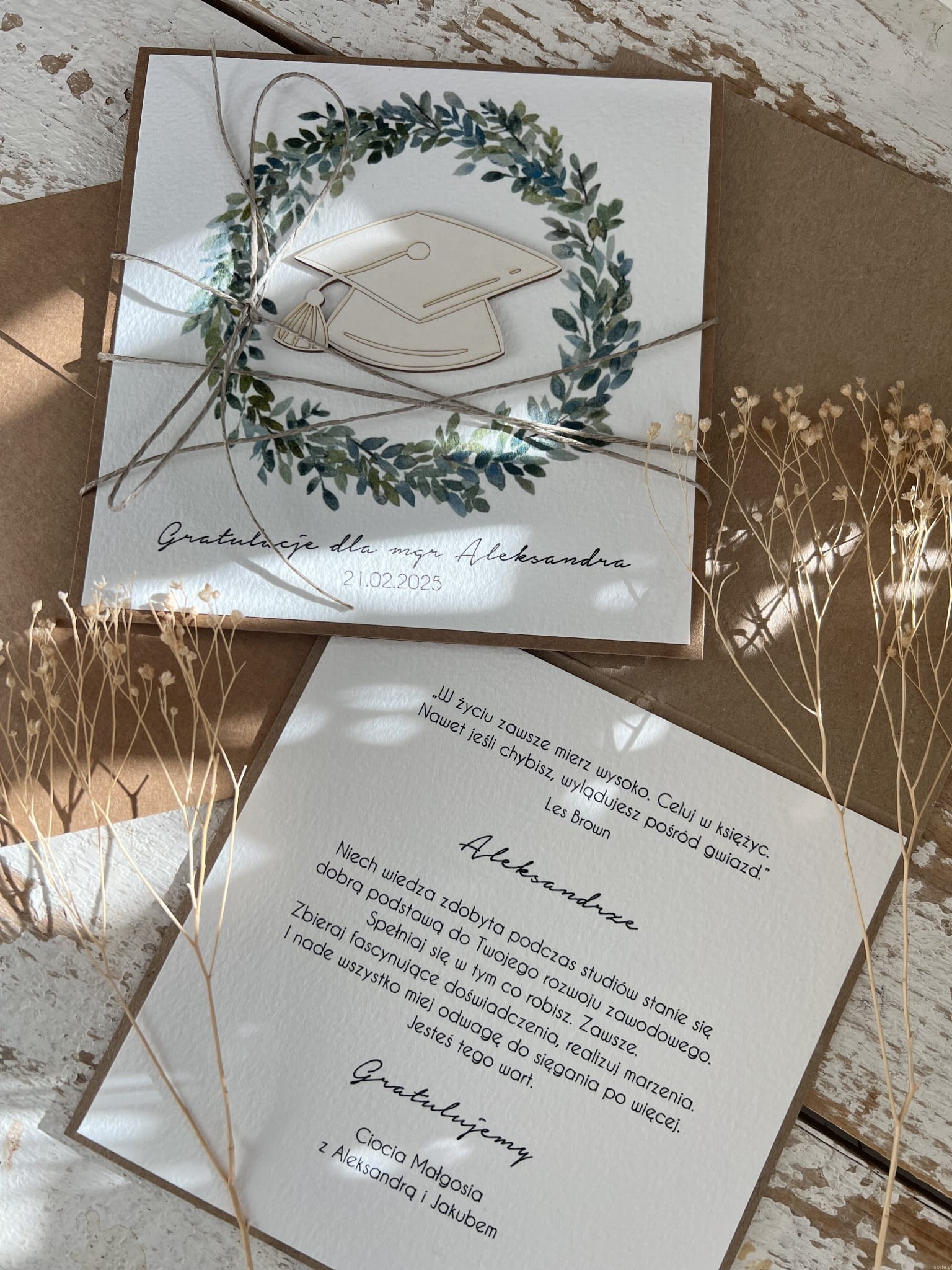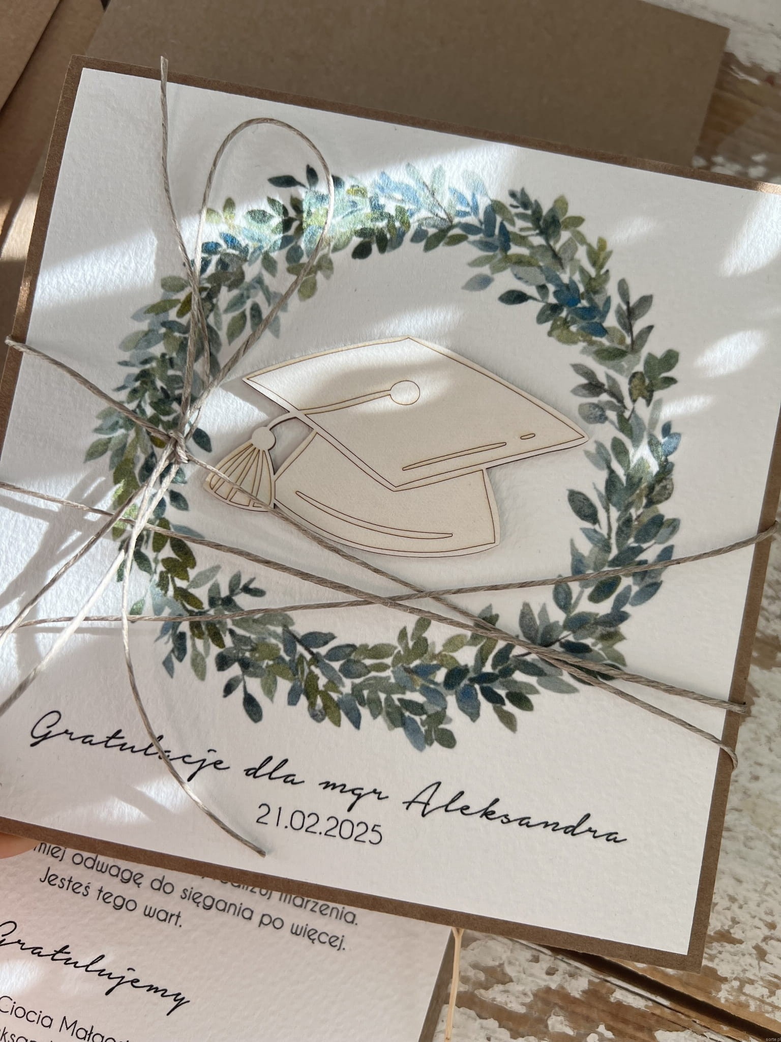 Personalizowana ręcznie robiona kartka gratulacje z okazji uzyskania absolutorium obrony pracy licencjackiej, magisterskiej, doktorskiej, dyplomatorium - biret