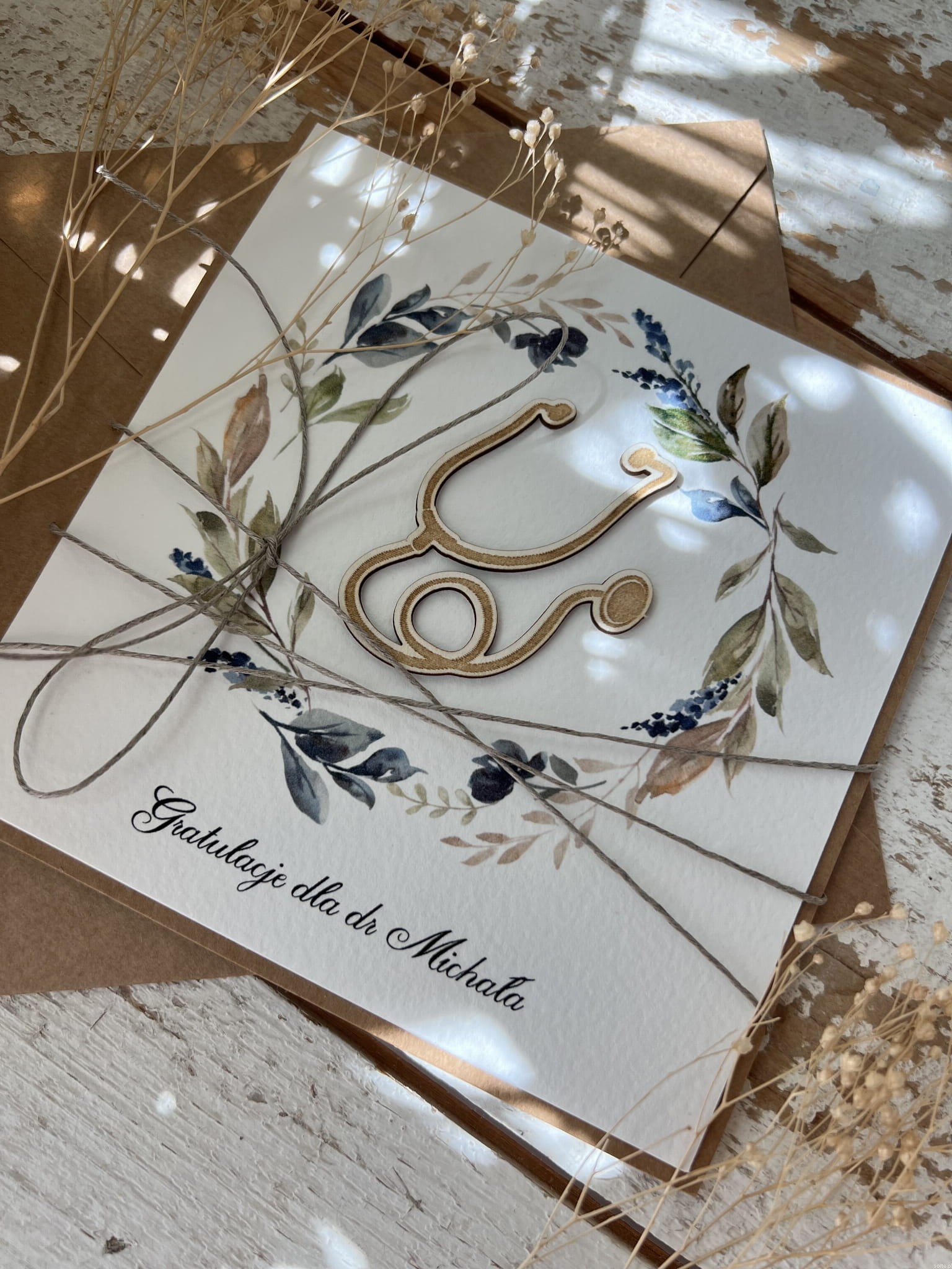 Personalizowana ręcznie robiona kartka gratulacje z okazji uzyskania absolutorium obrony pracy licencjackiej, magisterskiej, doktorskiej