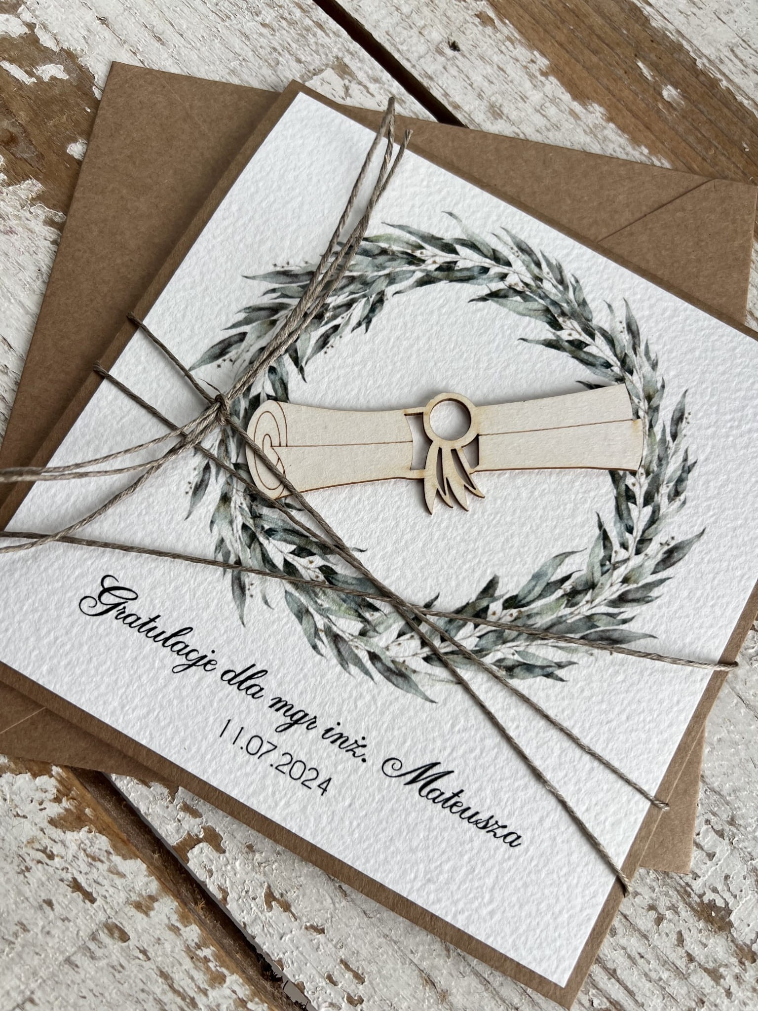 Personalizowana ręcznie robiona kartka gratulacje z okazji uzyskania absolutorium obrony pracy licencjackiej, magisterskiej, doktorskiej