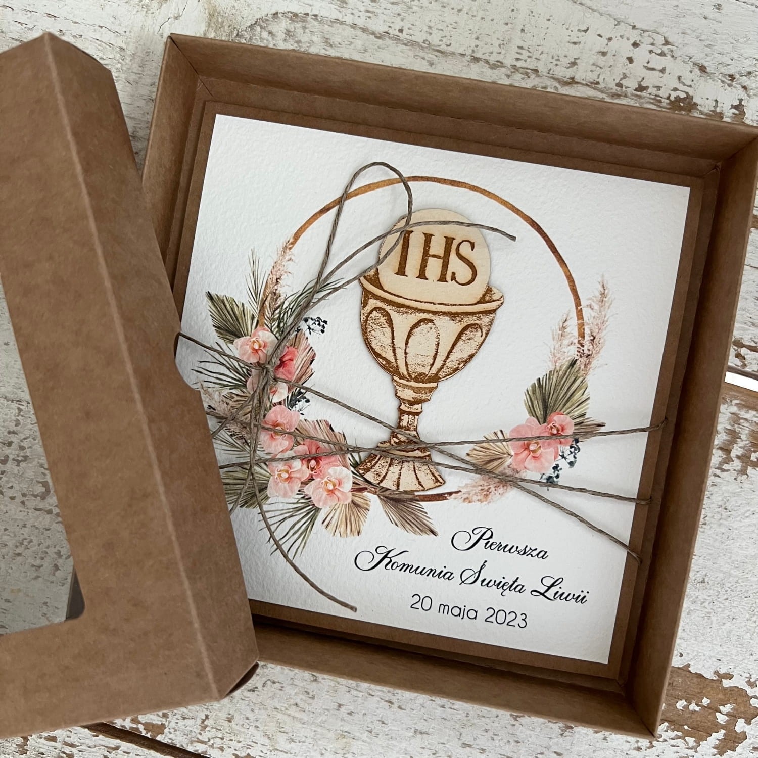 Personalizowana ręcznie robiona kartka komunijna, prezent na komunię - pamiątka komunii + najpiękniejsze życzenia dla dziewczynki, chłopca od matki chrzestnej, ojca chrzestnego, dziadków
