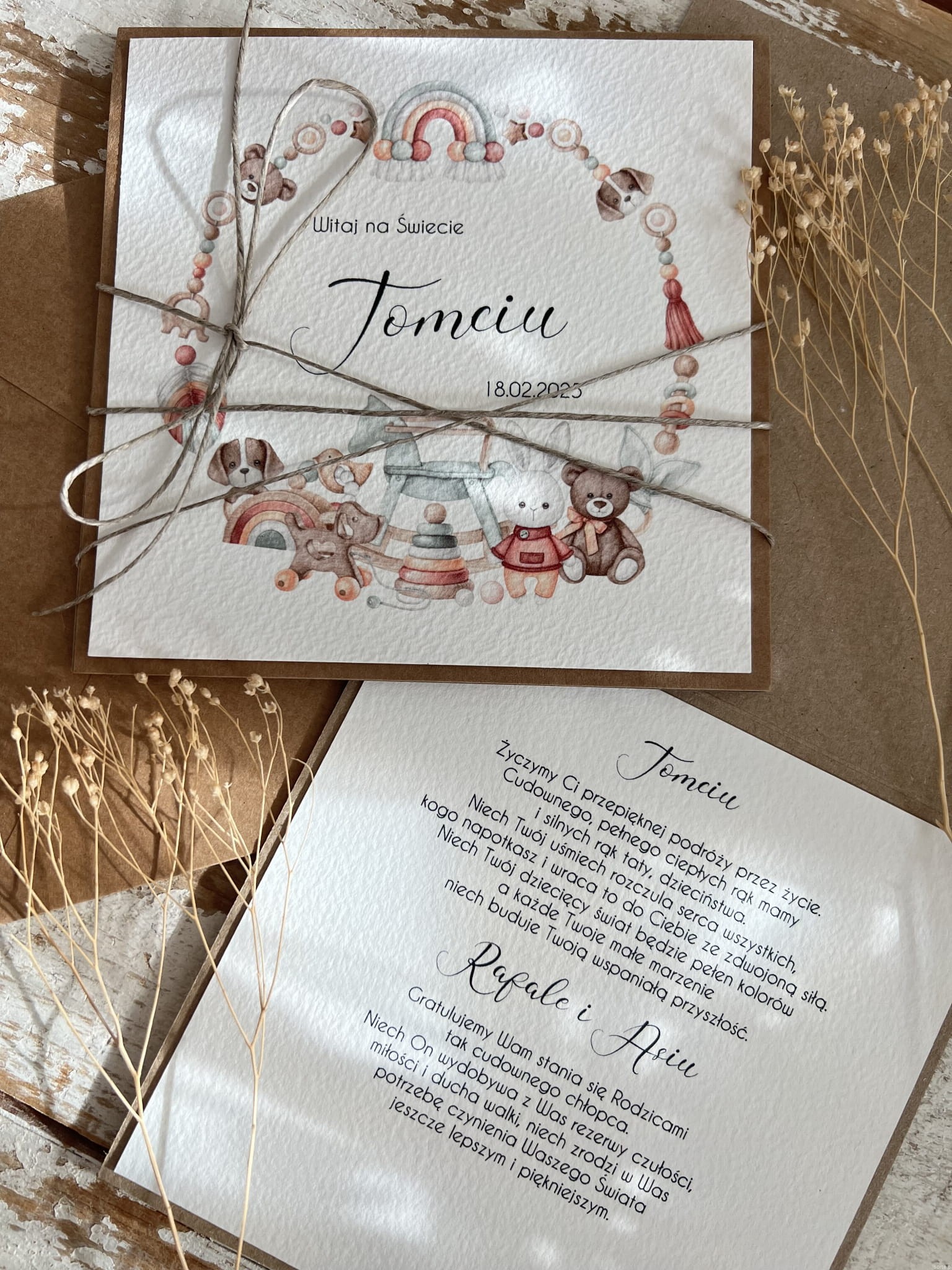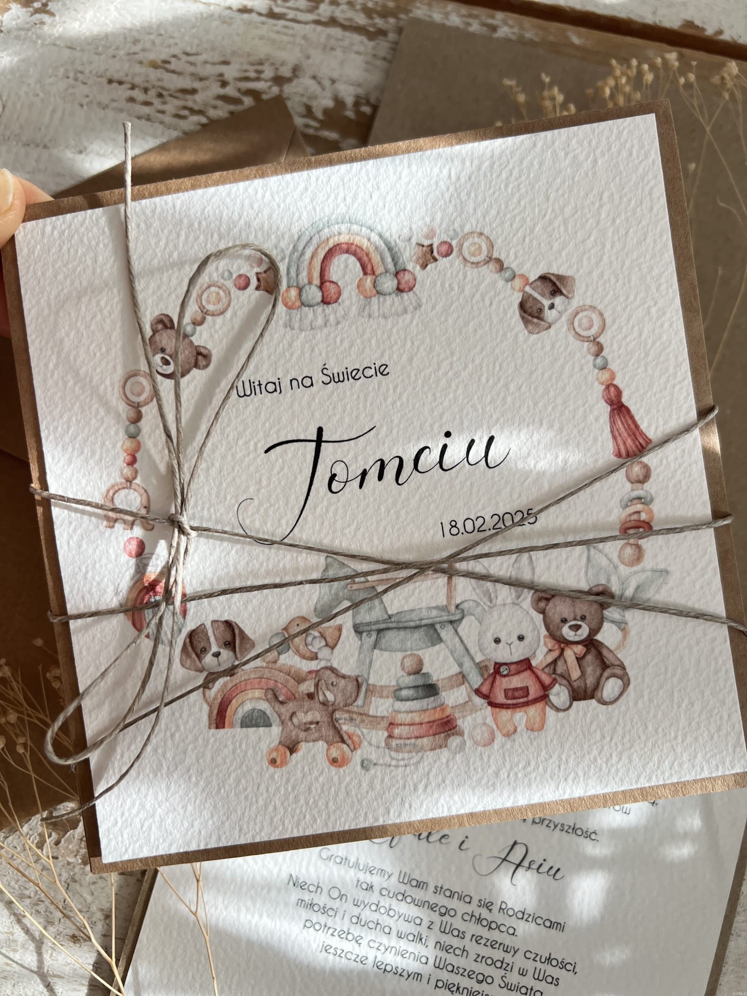 Personalizowana ręcznie robiona kartka na narodziny dziecka - gratulacje z okazji narodzin dziecka - życzenia