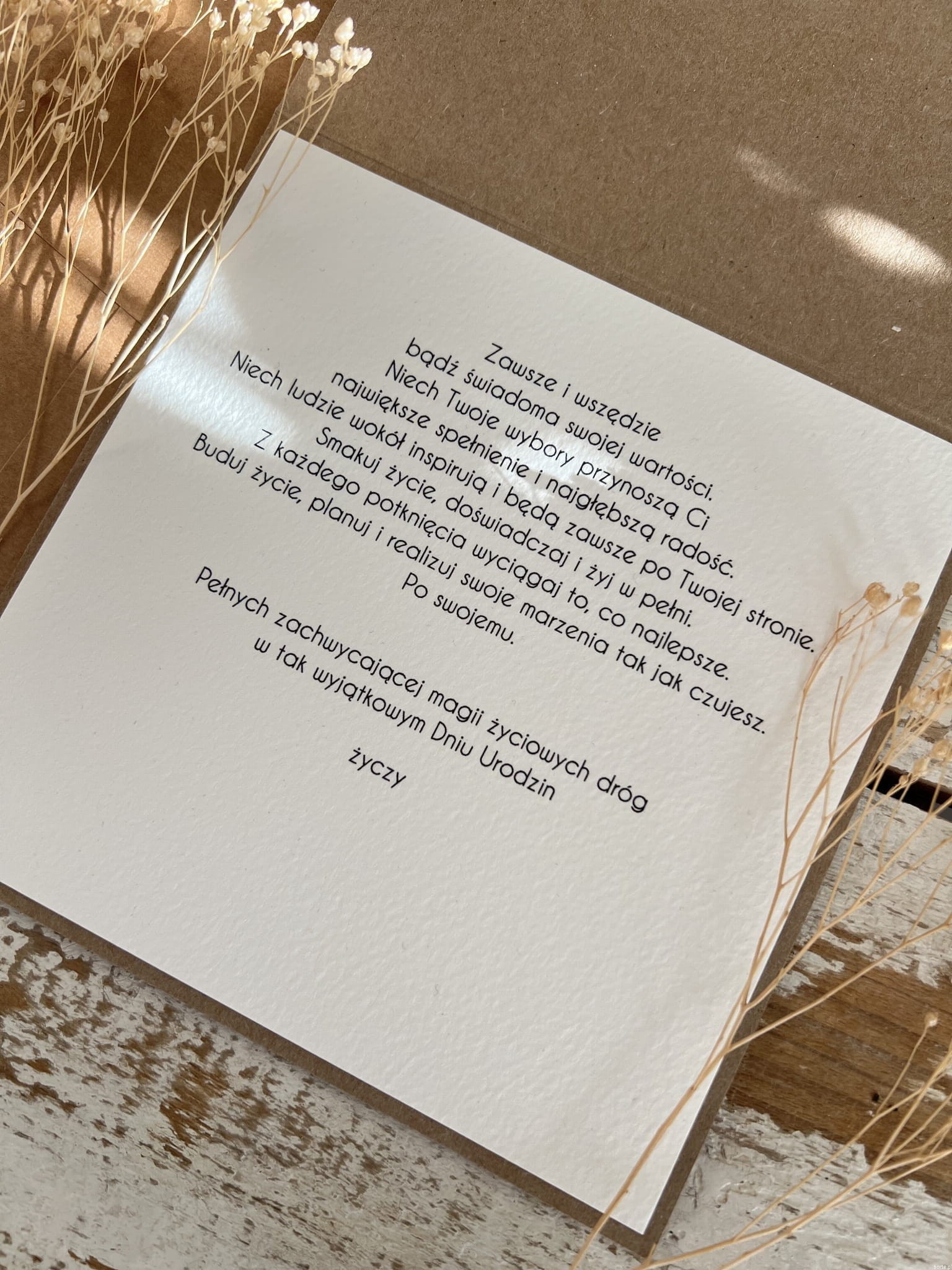 Kartka wykonana jest z najwyższej jakości starannie dobranych materiałów i dodatków w tym papieru kraftowego, ekologicznego papieru bawełnianego - 100% bawełny. w odcieniu śmietanki, tekturtkowych ozdób. Personalizowana na przodzie w postaci imienia - daty (możesz podać własny tekst na przód kartki oraz do środka). Mile widziane słowa prosto z serca :)