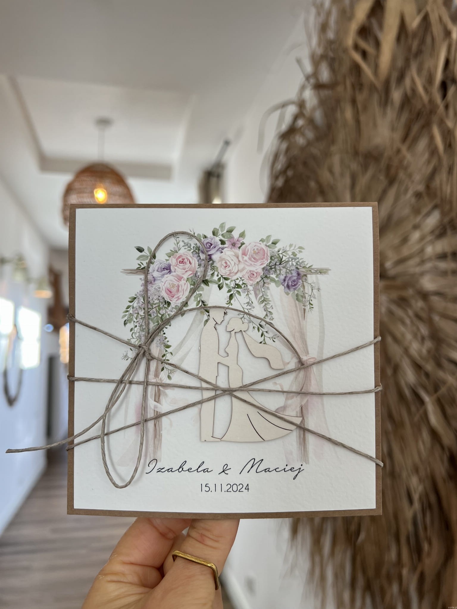 Personalizowany prezent - wyjątkowa kartka ślubna ręcznie robiona w stylu boho na ślub pomysł prezent ślubny z personalizacją + personalizowane najpiękniejsze życzenia ślubne
