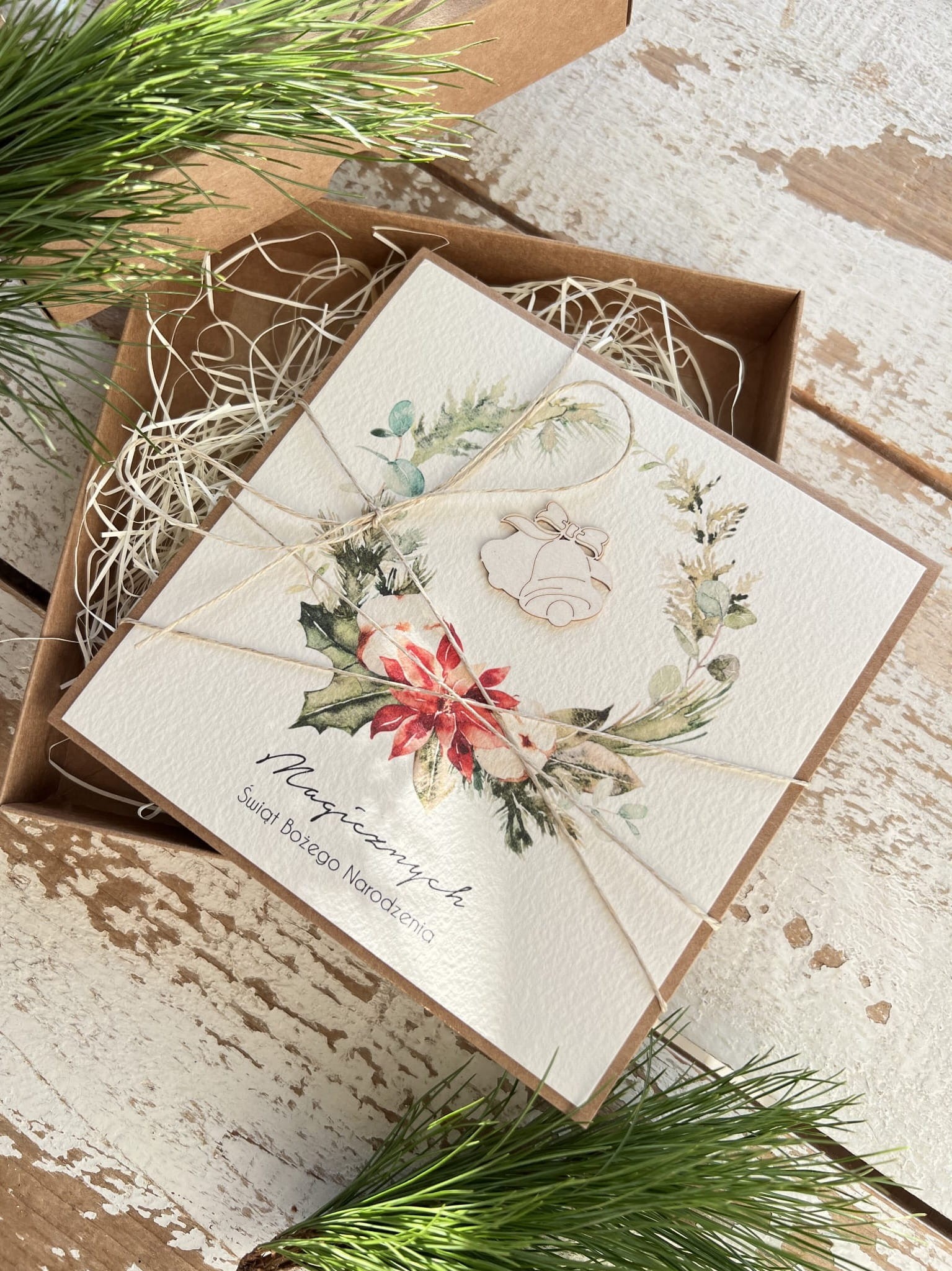 Ręcznie robiona kartka firmowa w pudełku z wypełnieniem na Boże Narodzenie dla firmy, biznesowe życzenia od firmy - z personalizacją