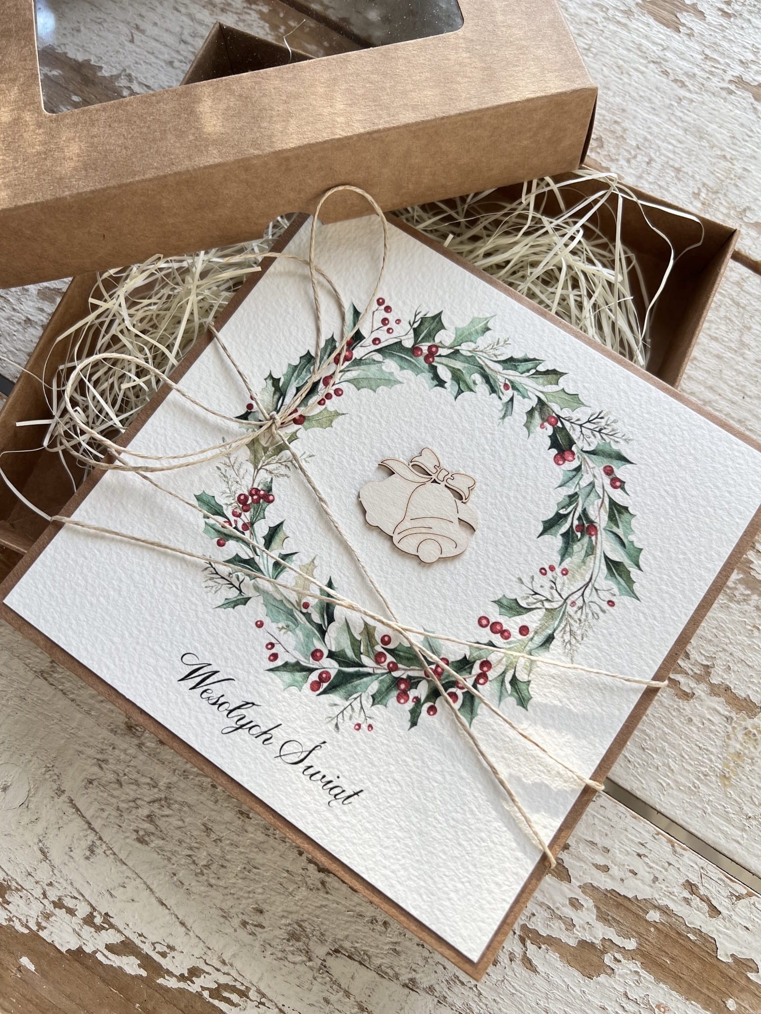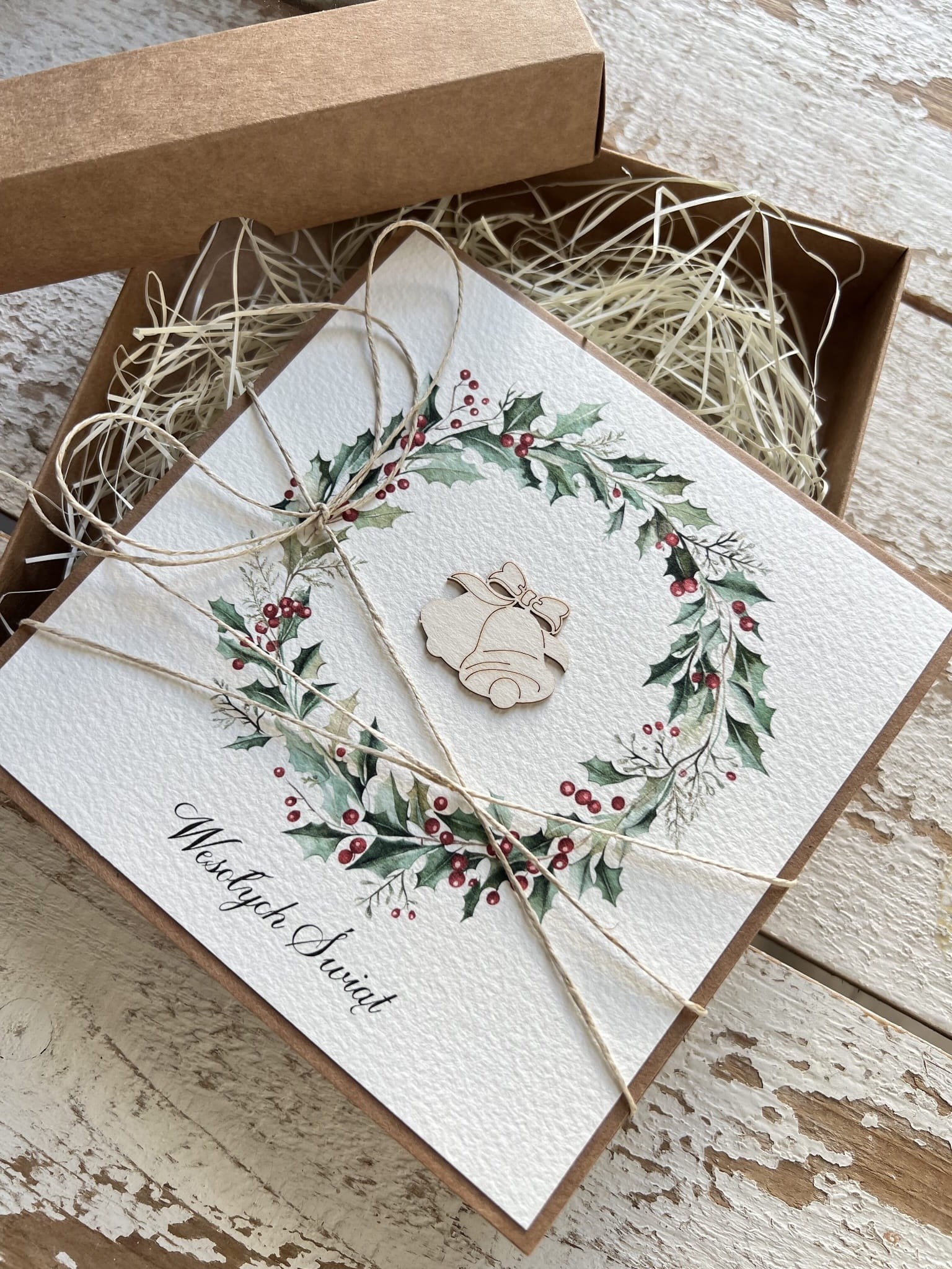 Ręcznie robiona kartka firmowa z personalizacją w pudełku z wypełnieniem na Boże Narodzenie dla firmy, biznesowe życzenia od firmy - prezent dla partnerów biznesowych