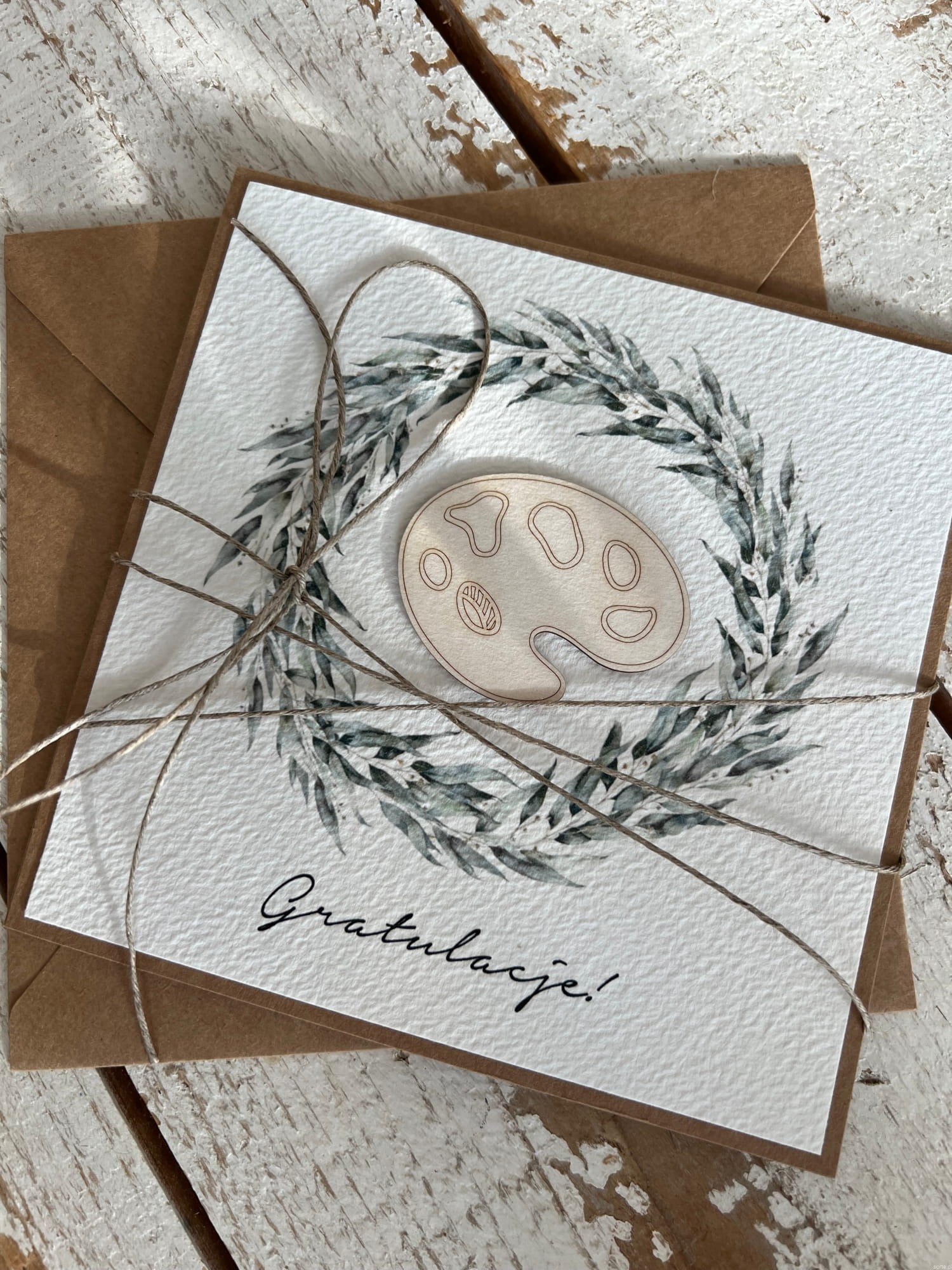 Ręcznie robiona kartka gratulacje z okazji uzyskania absolutorium obrony pracy licencjackiej, magisterskiej, doktorskiej dla plastyka, artysty