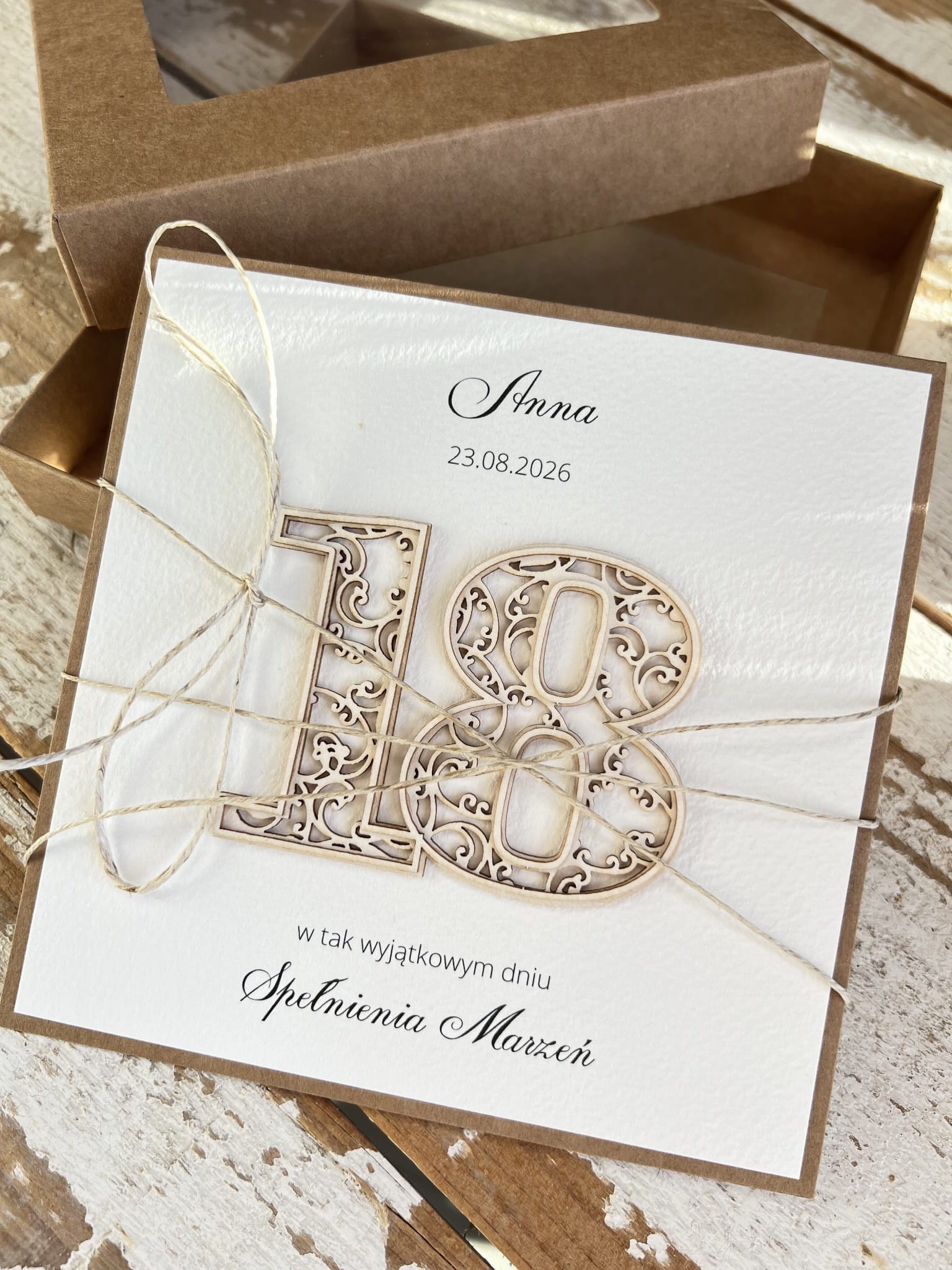 Personalizowany prezent - kartka ręcznie robiona na 18 urodziny w pudełku, pomysł na prezent osiemnastka z personalizacją + personalizowane najpiękniejsze życzenia urodzinowe