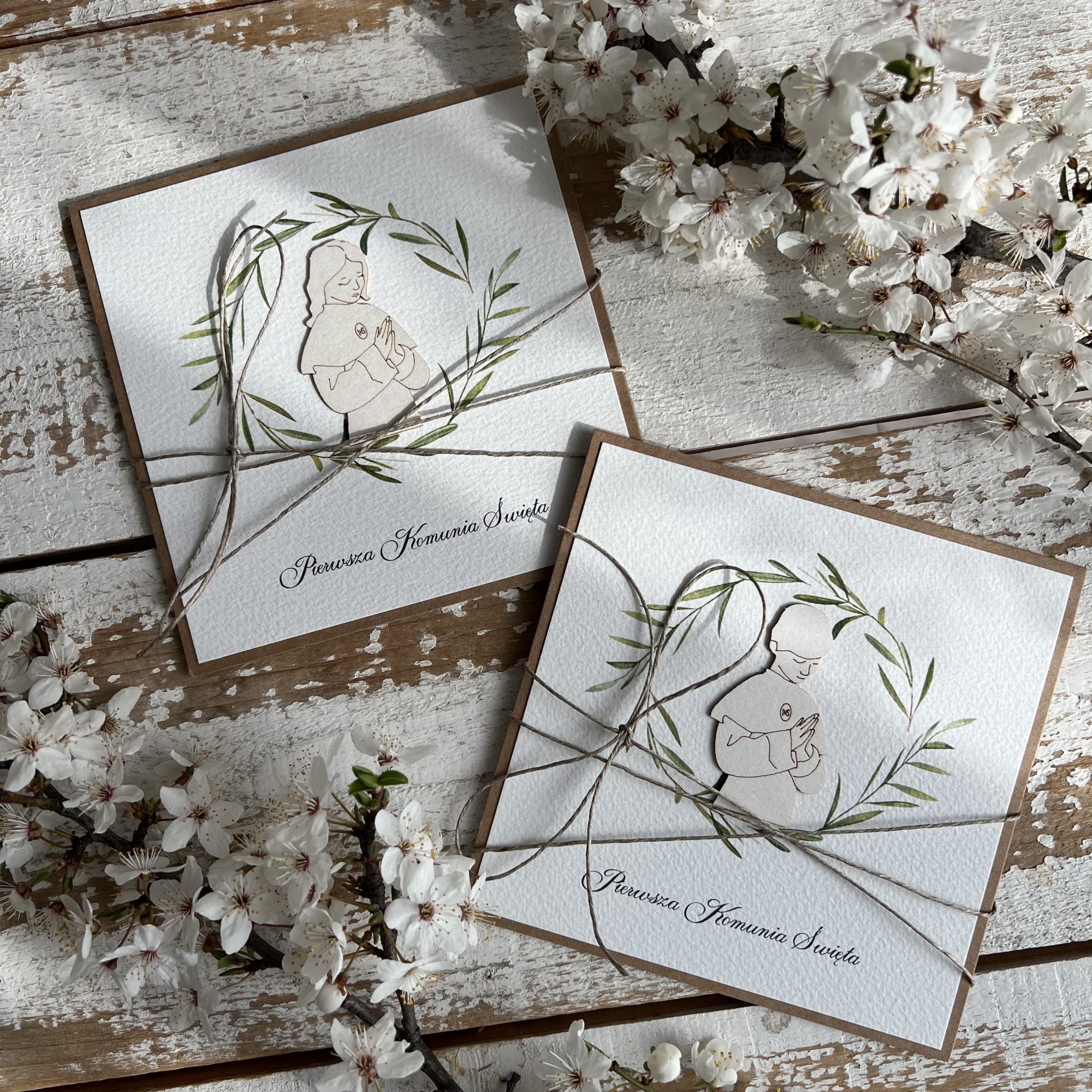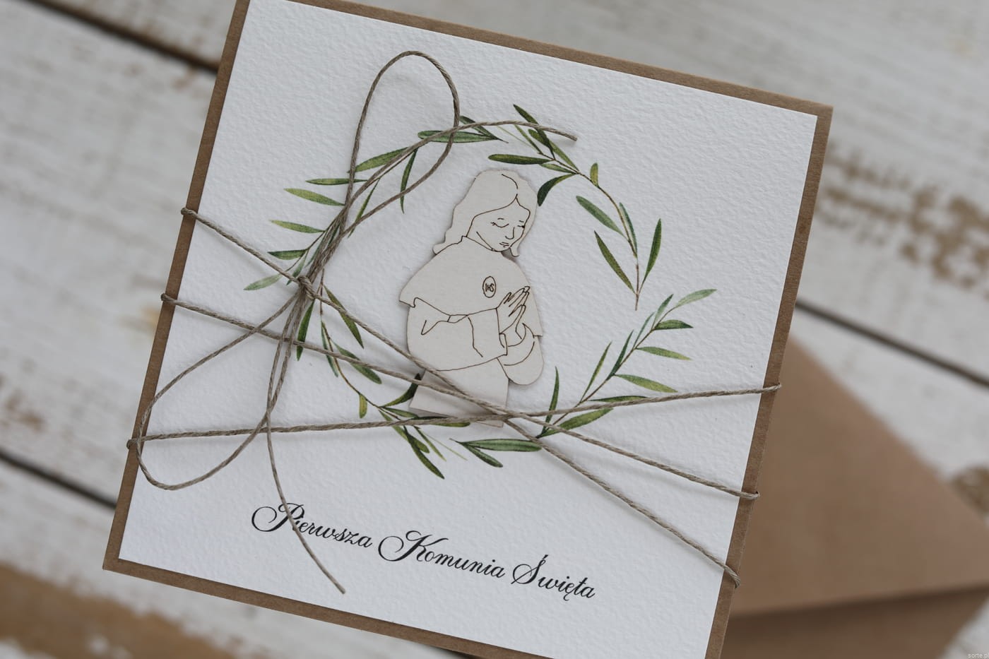 Ręcznie robiona kartka na komunię z życzeniami - dziewczynka