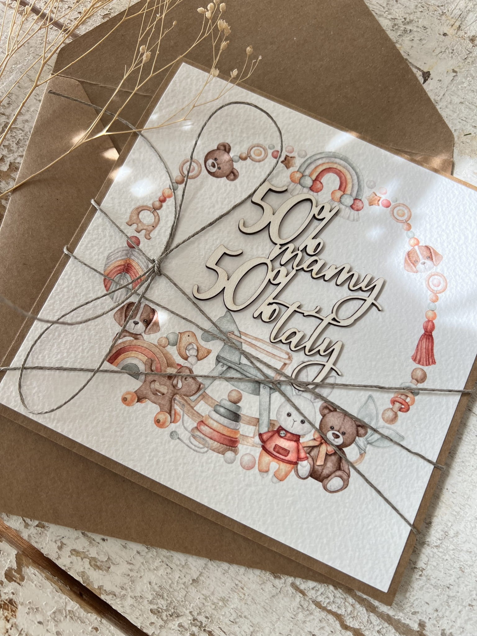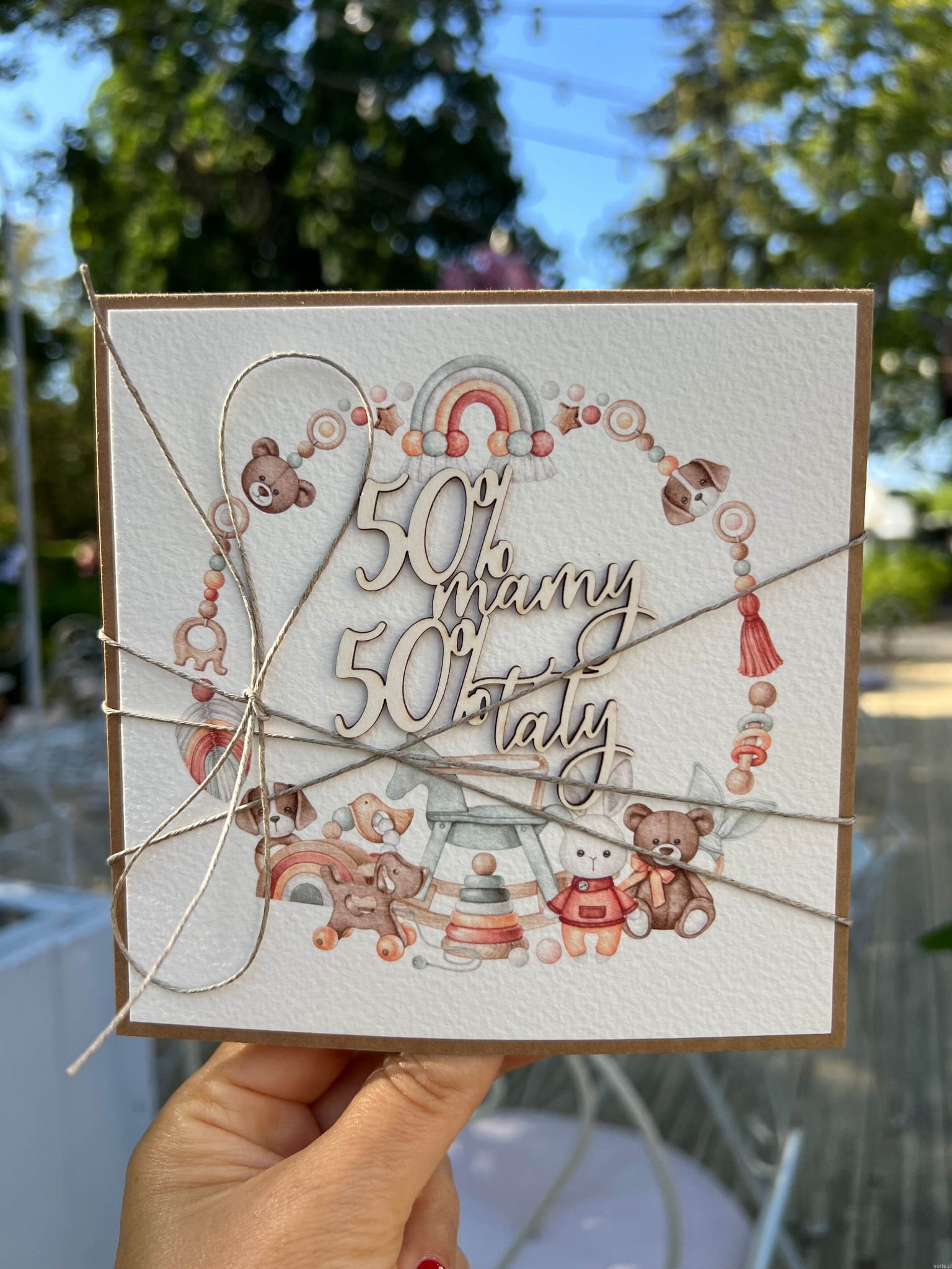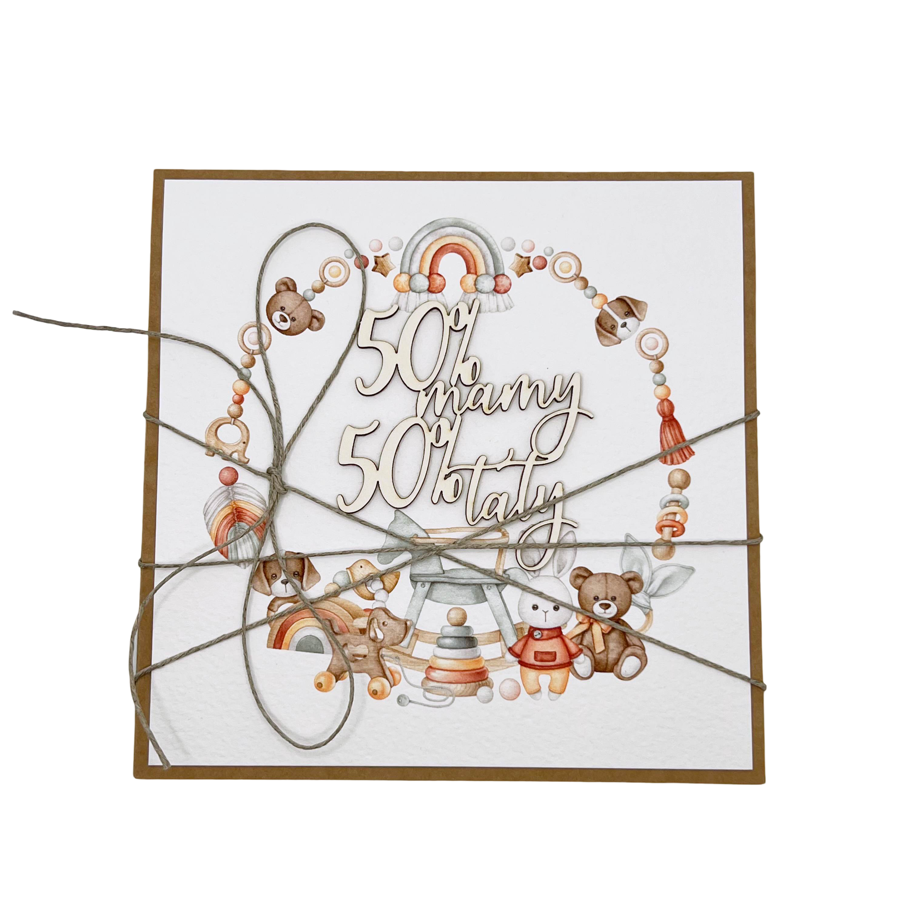 Ręcznie robiona kartka na narodziny dziecka - gratulacje 50% mamy 50% taty