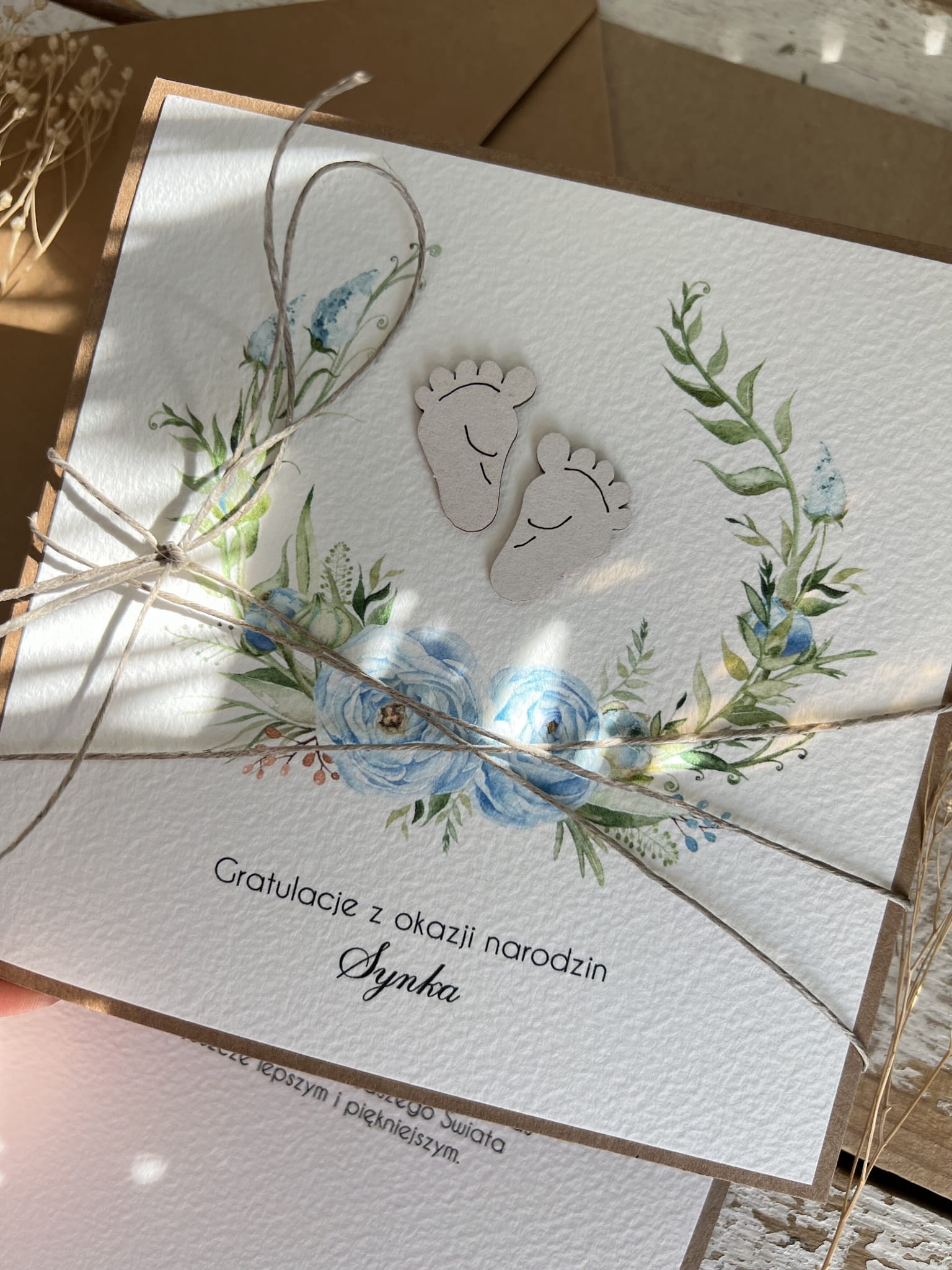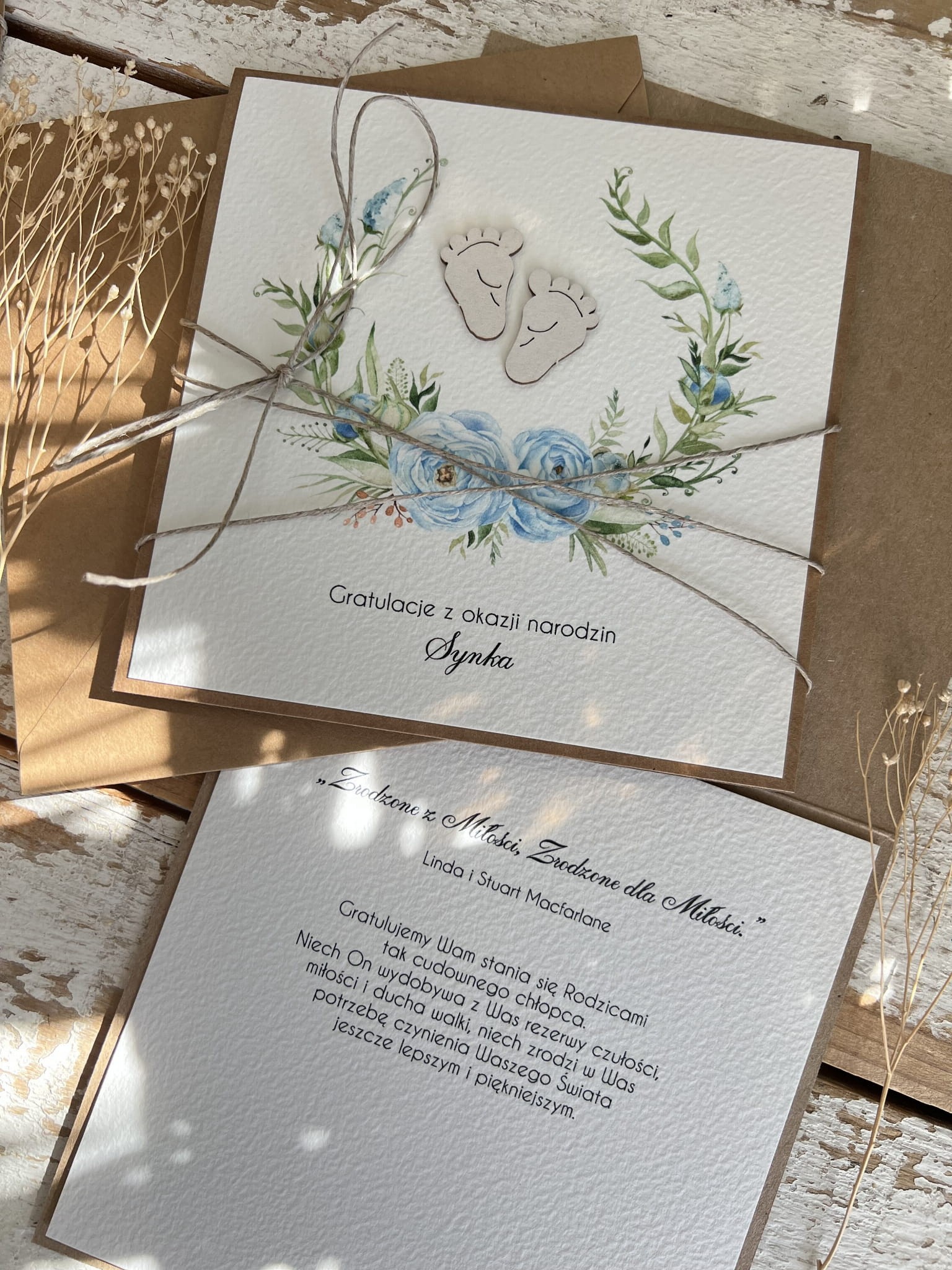Ręcznie robiona kartka na narodziny dziecka - gratulacje z okazji narodzin synka