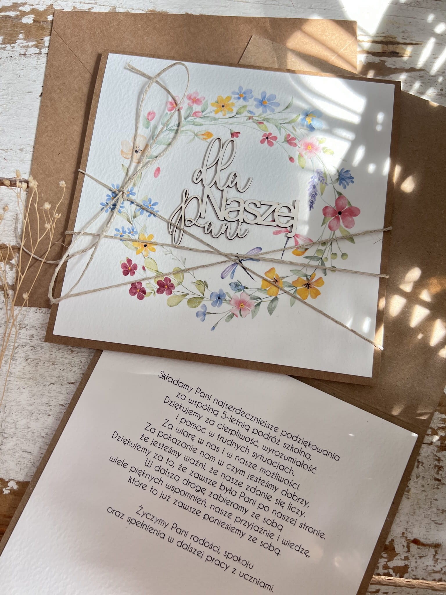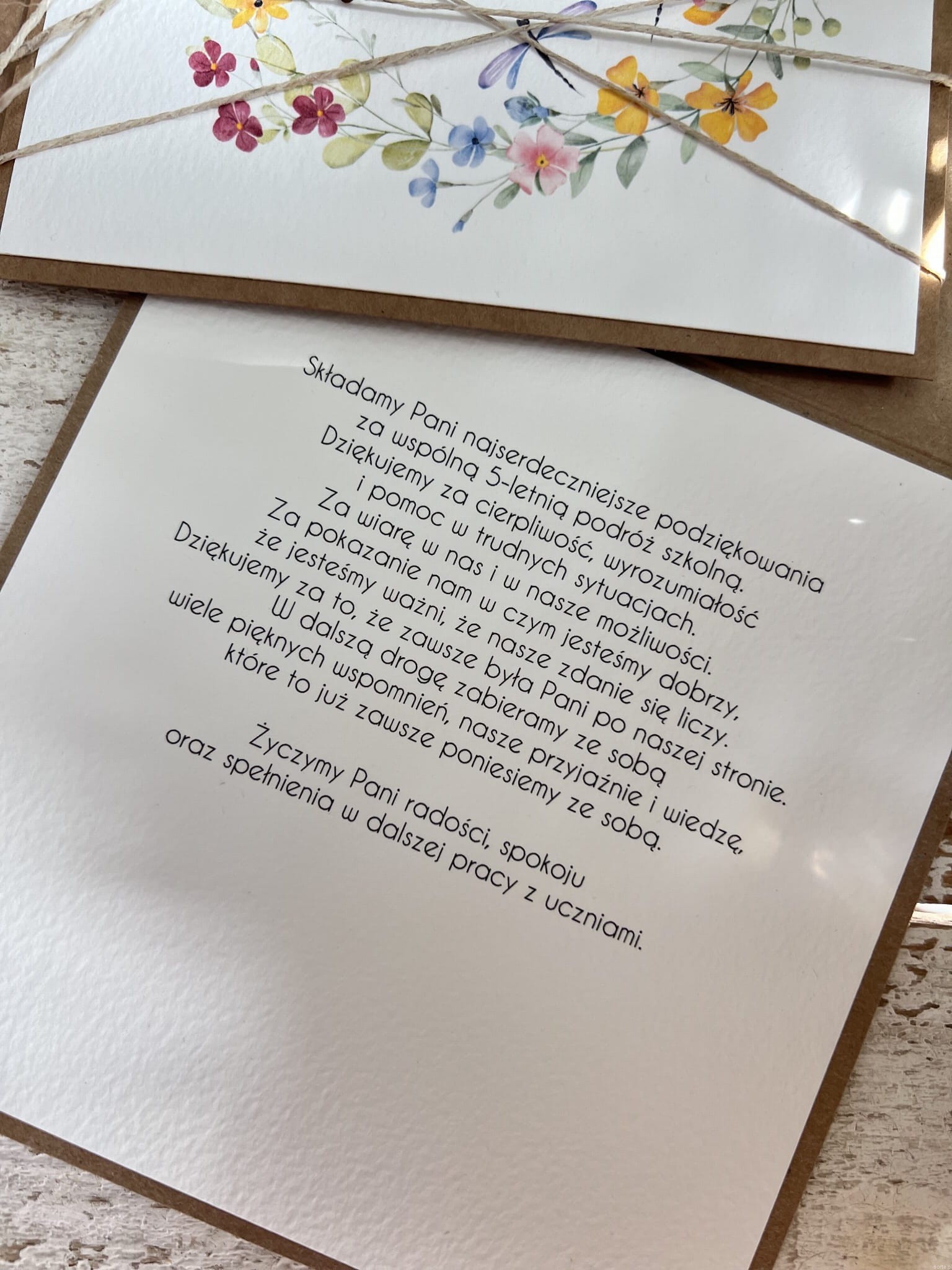 Ręcznie robiona kartka prezent dla pani wychowawczyni - na zakończenie szkoły 8 klasy życzenia