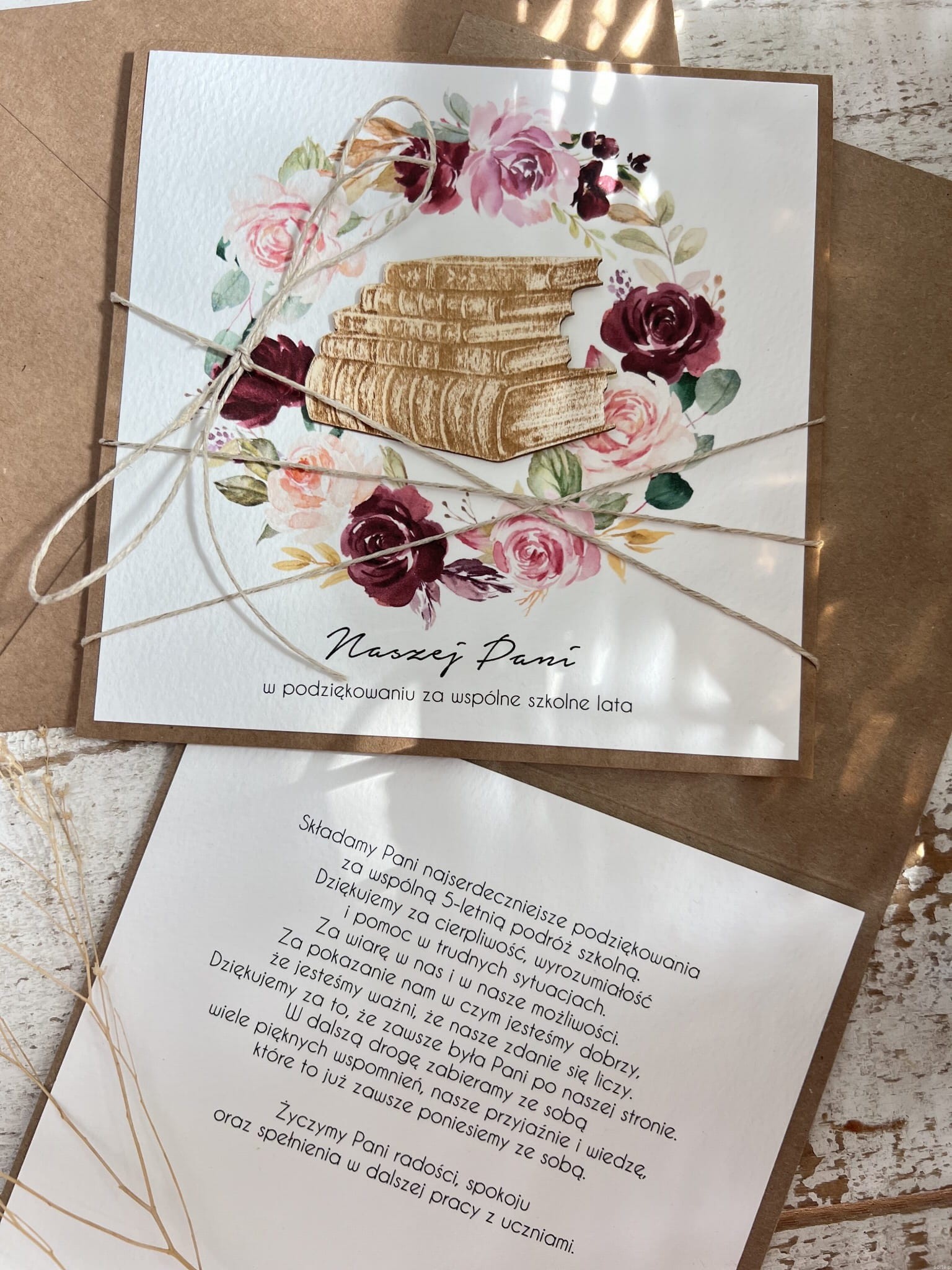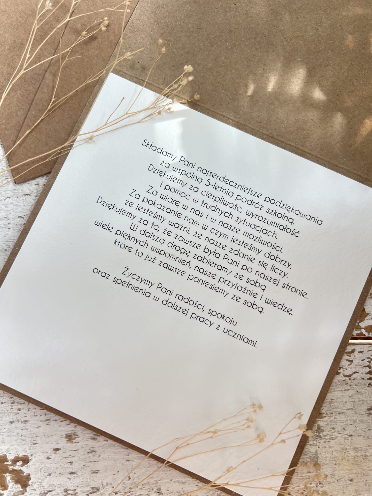 Ręcznie robiona kartka prezent dla pani wychowawczyni - na zakończenie szkoły 8 klasy życzenia
