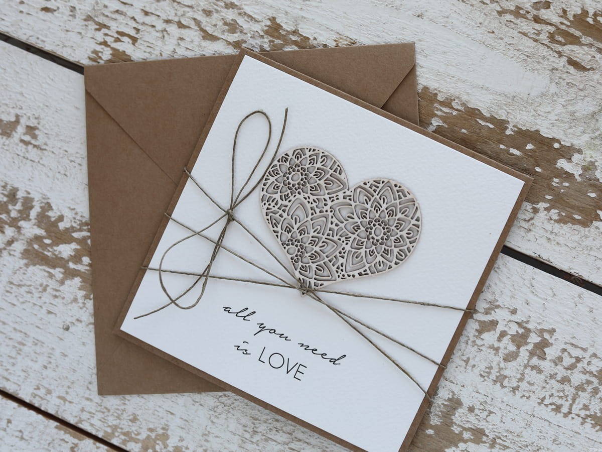 Ręcznie robiona kartka ślubna, walentynkowa z sercem.