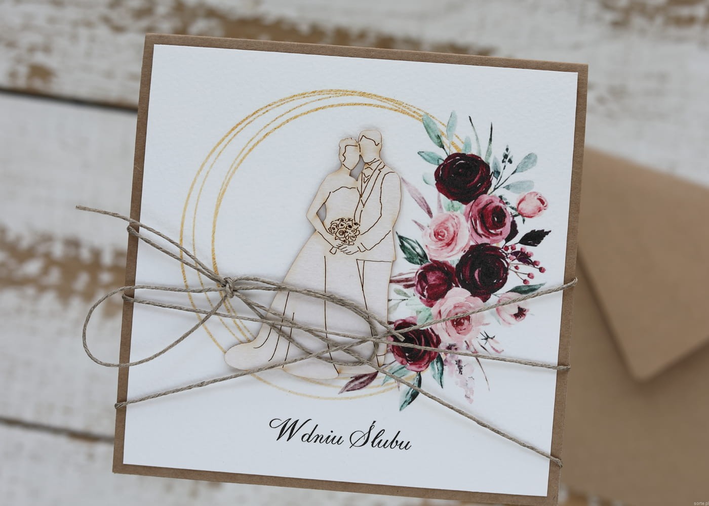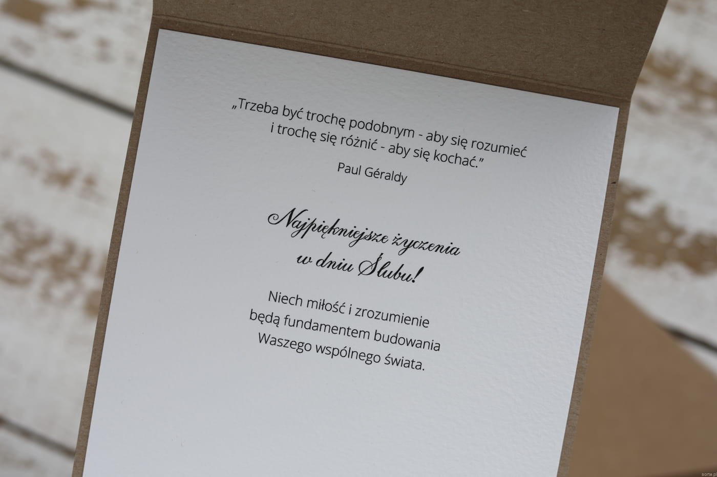 Ręcznie robiona kartka ślubna boho w dniu ślubu z życzeniami