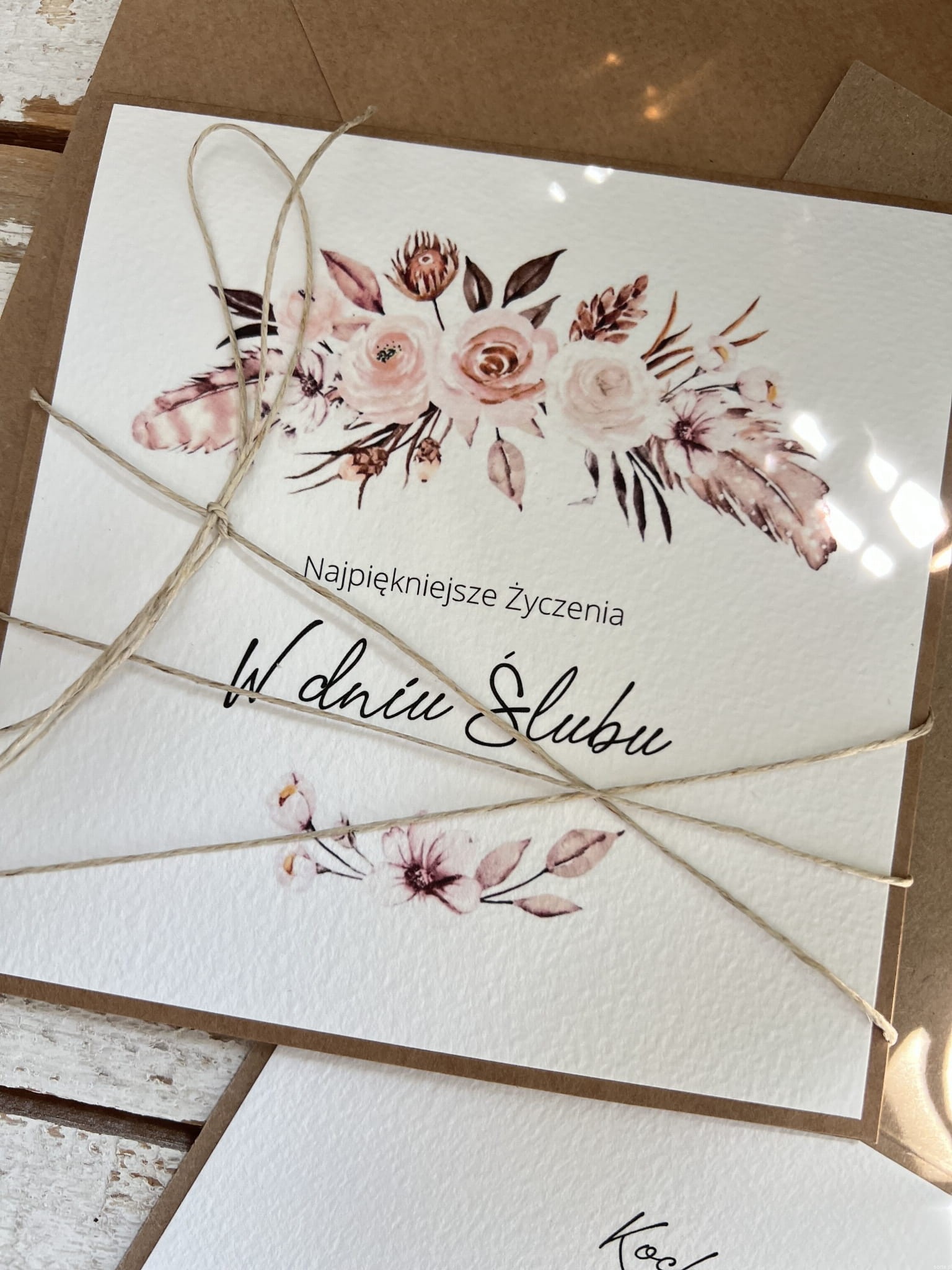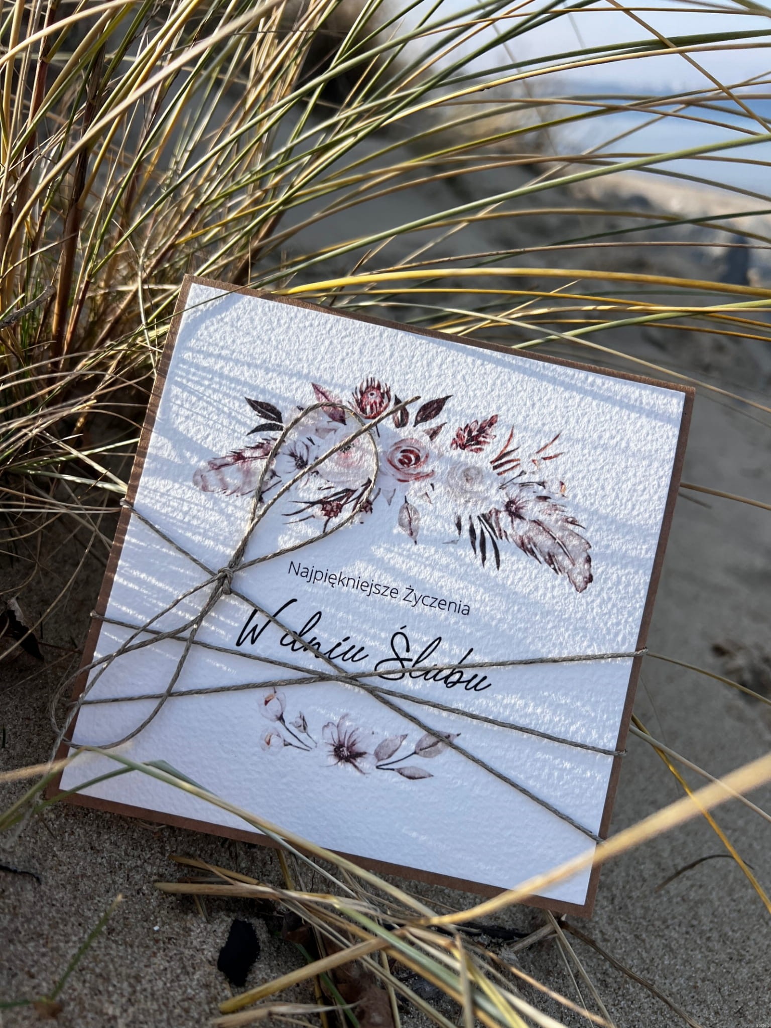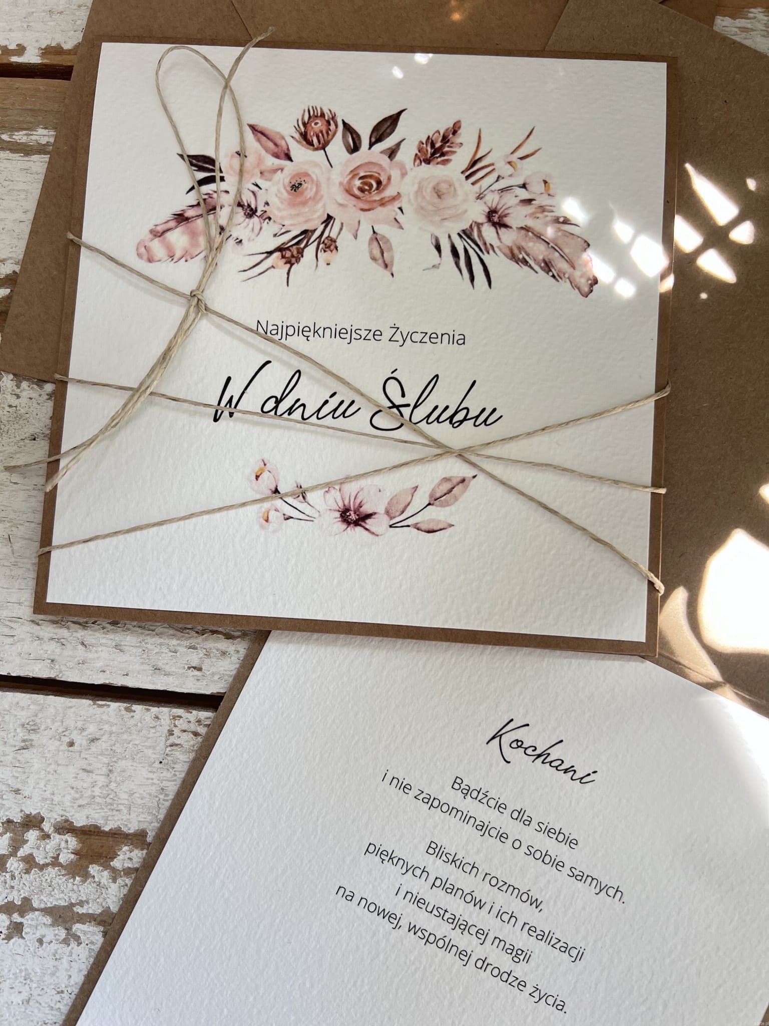 Ręcznie robiona kartka ślubna w dniu ślubu przepiękne życzenia ślubne