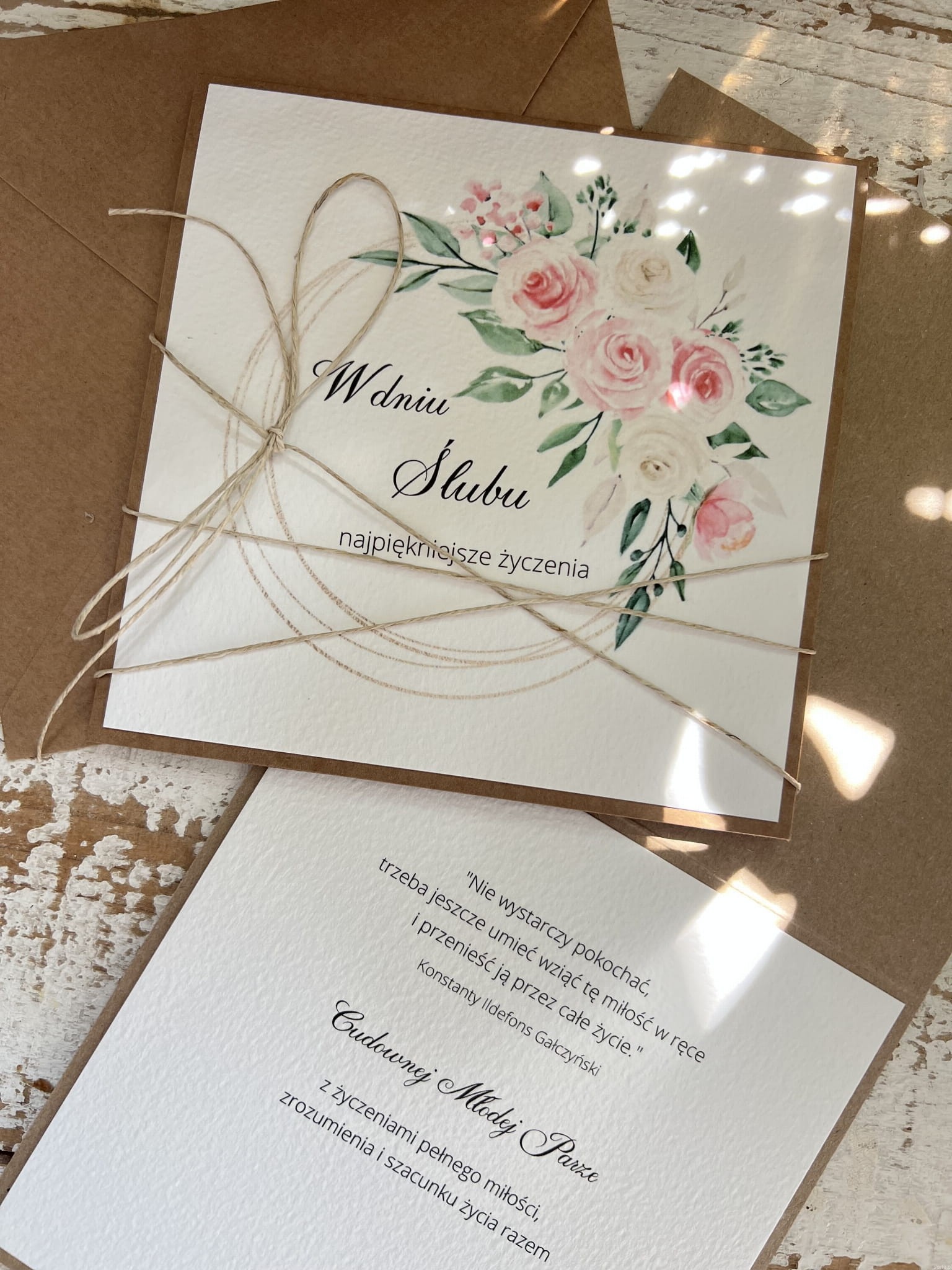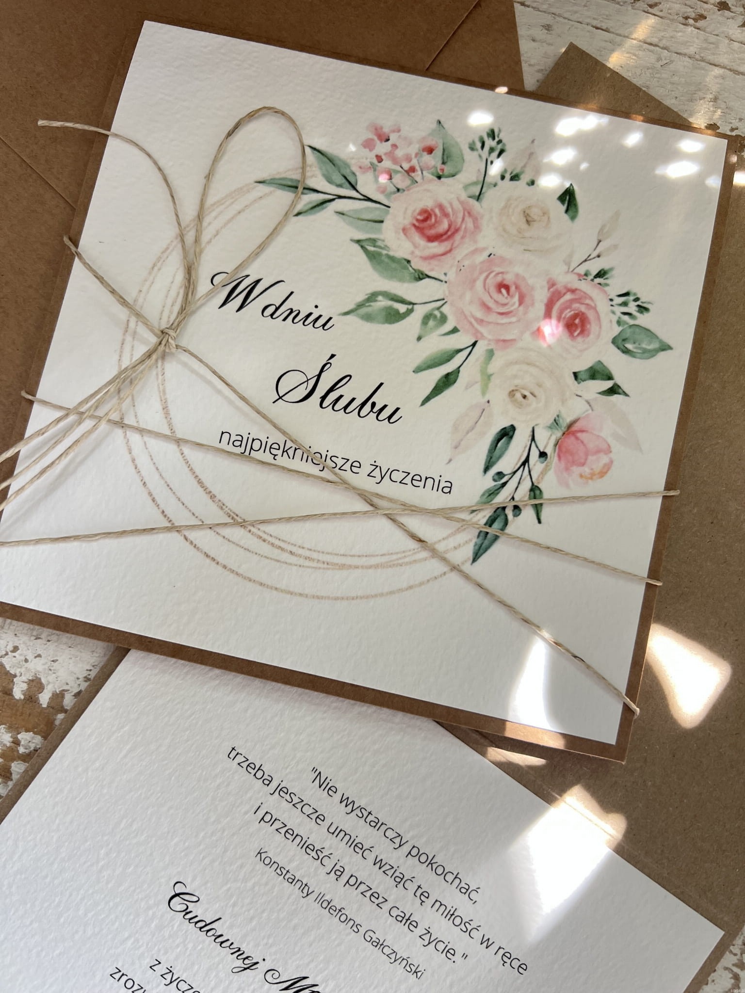 Ręcznie robiona kartka ślubna w dniu ślubu przepiękne życzenia ślubne