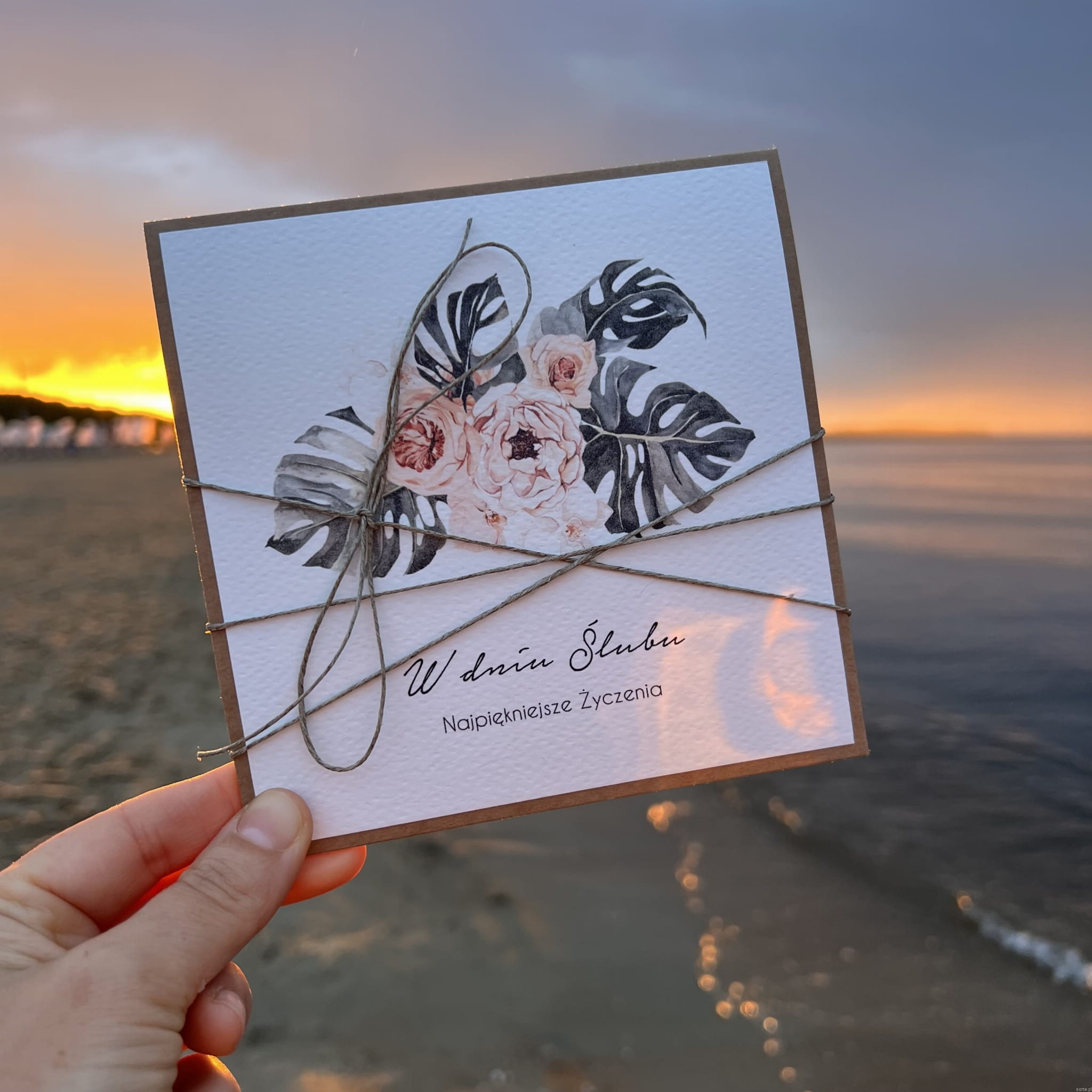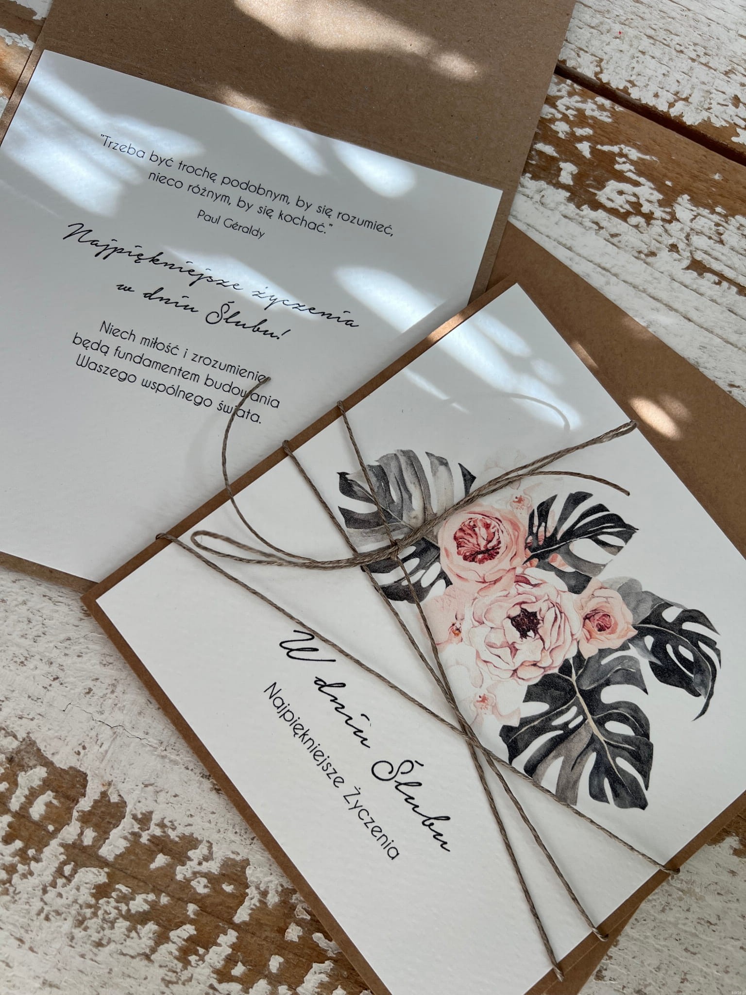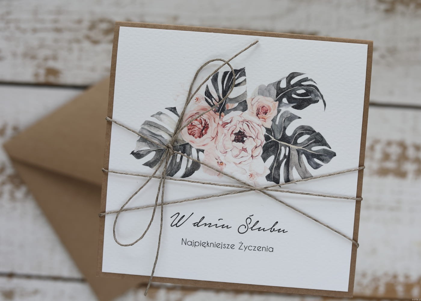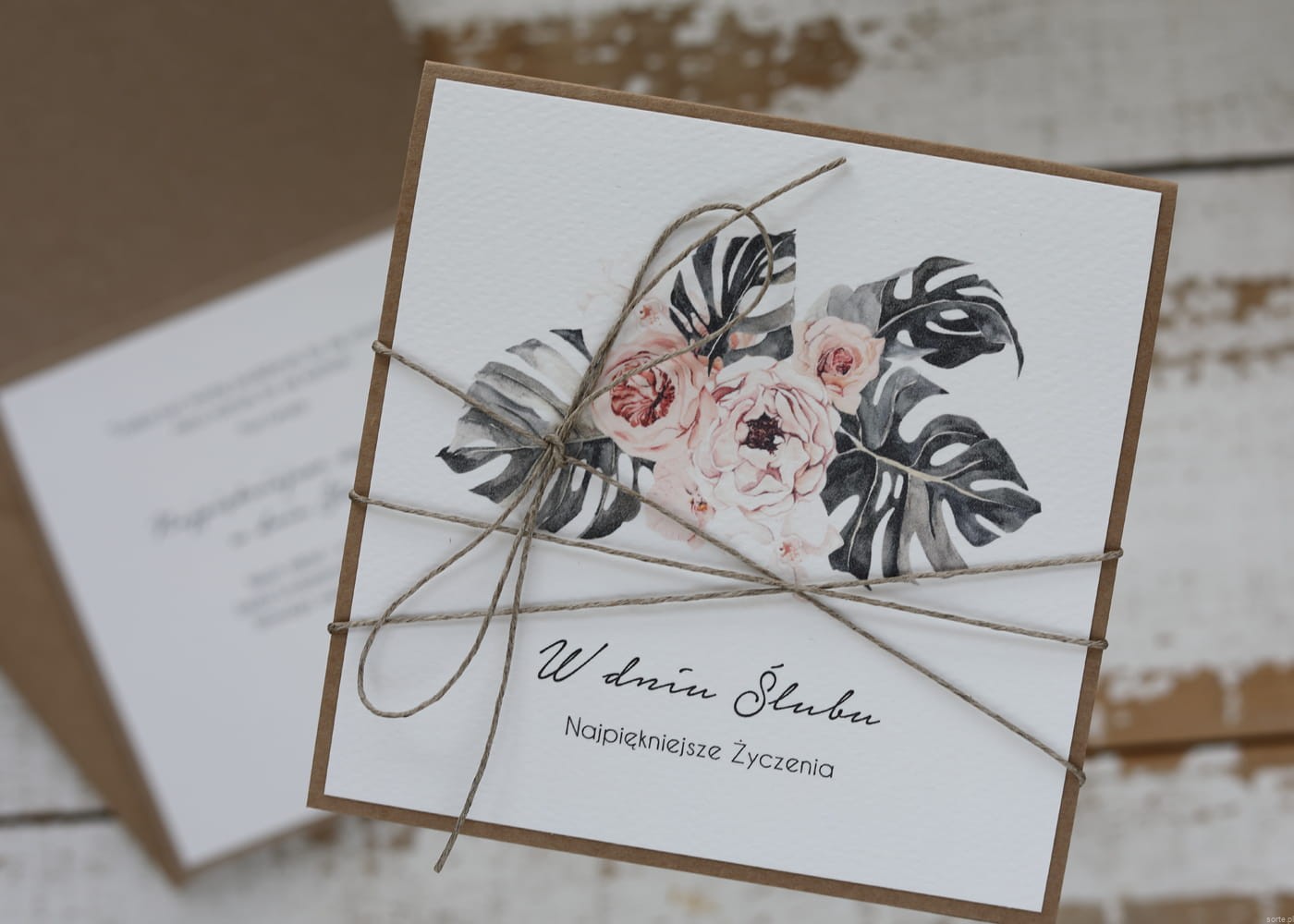 Ręcznie robiona kartka ślubna z monsterą