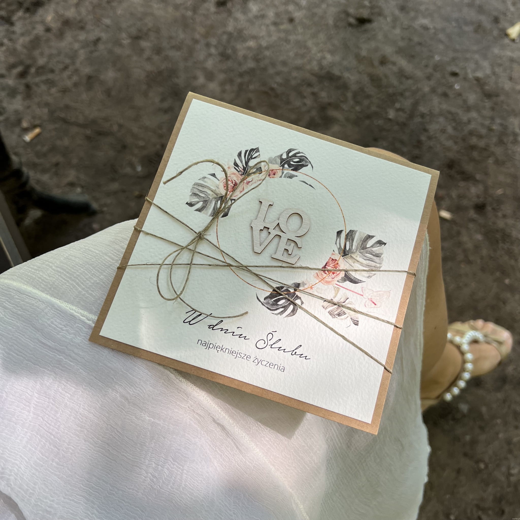 Rustykalna kartka ślubna, życzenia na ślub, idealny dodatek do prezentu ślubnego, koperta na pieniądze, LOVE