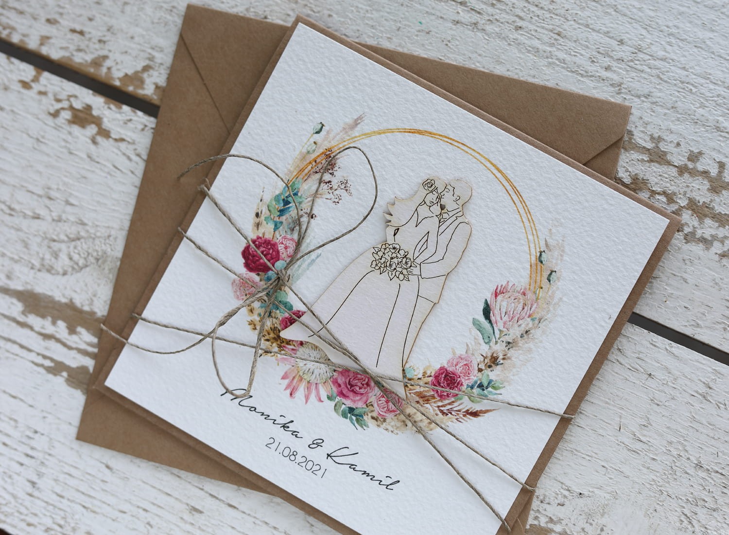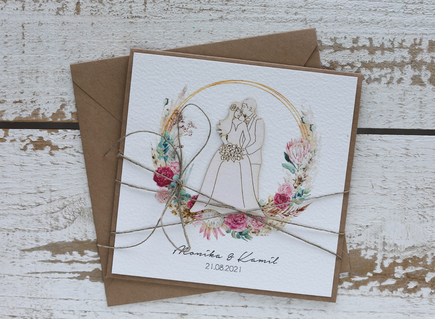 Rustykalna kartka ślubna ręcznie robiona Młoda Para