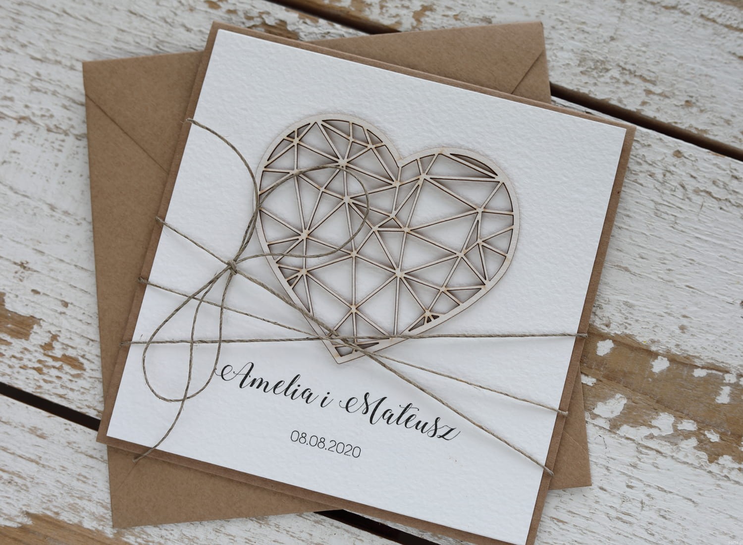 Rustykalna kartka ślubna ręcznie robiona serce