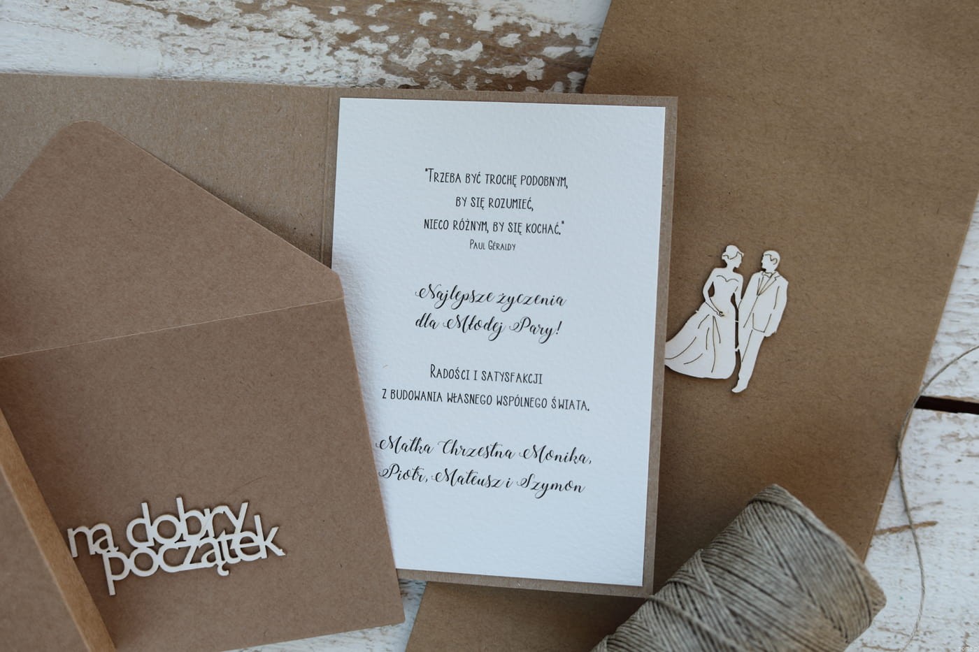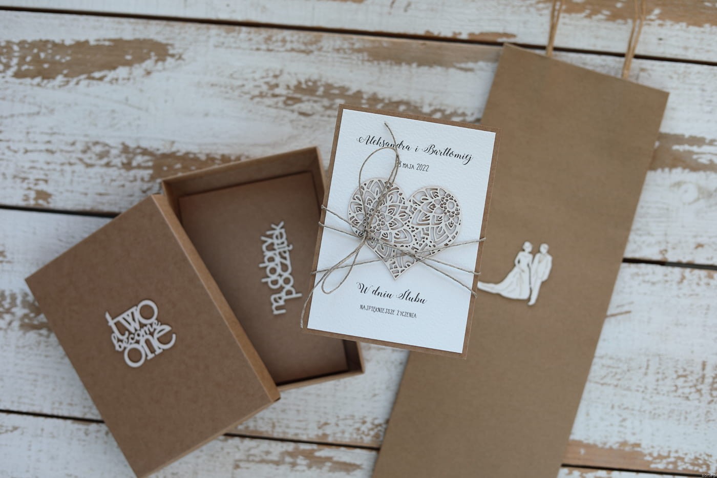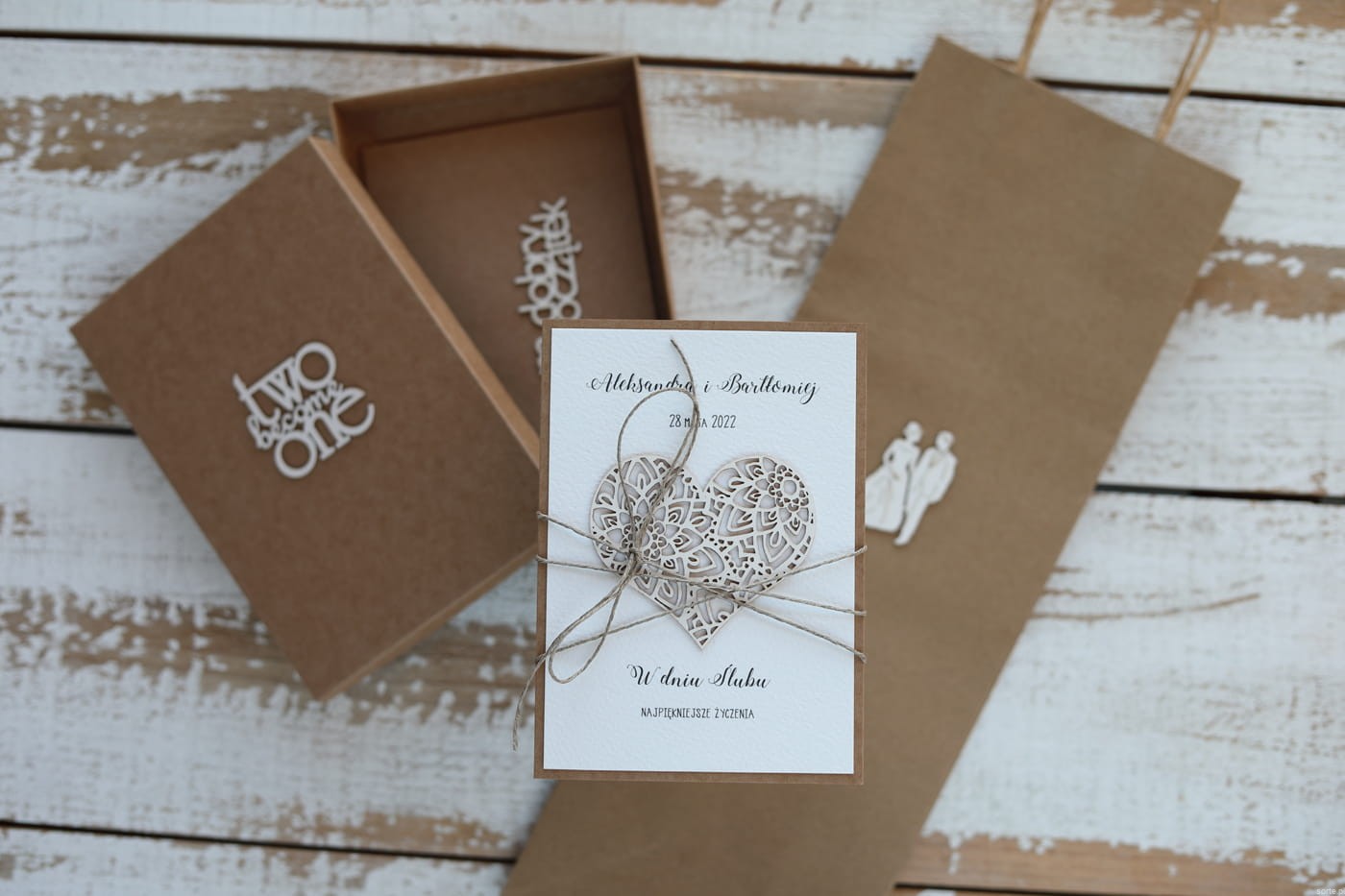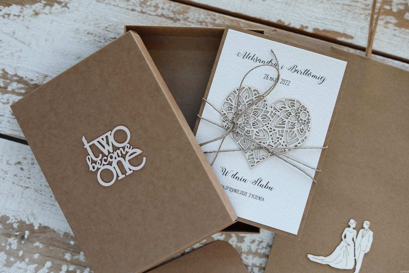 Rustykalna kartka ślubna z personalizacją 2 become 2 zestaw