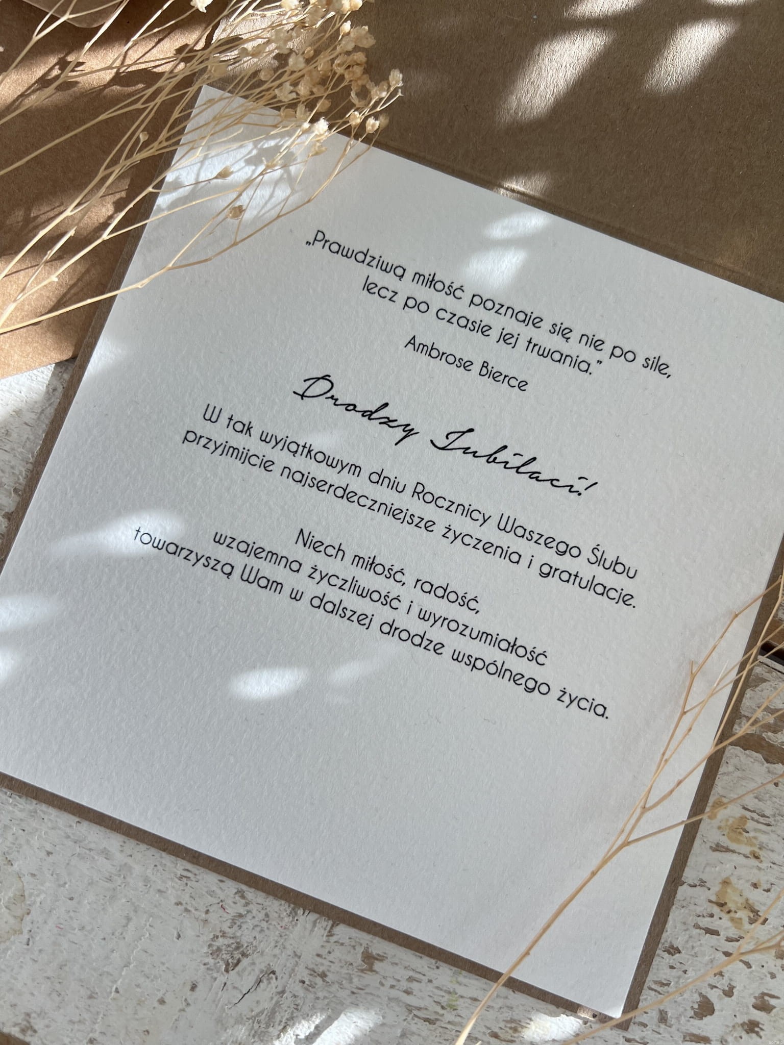 Rustykalna kartka życzenia z okazji 55. rocznicy ślubu - pięćdziesiąta rocznica ślubu - pomysł na prezent