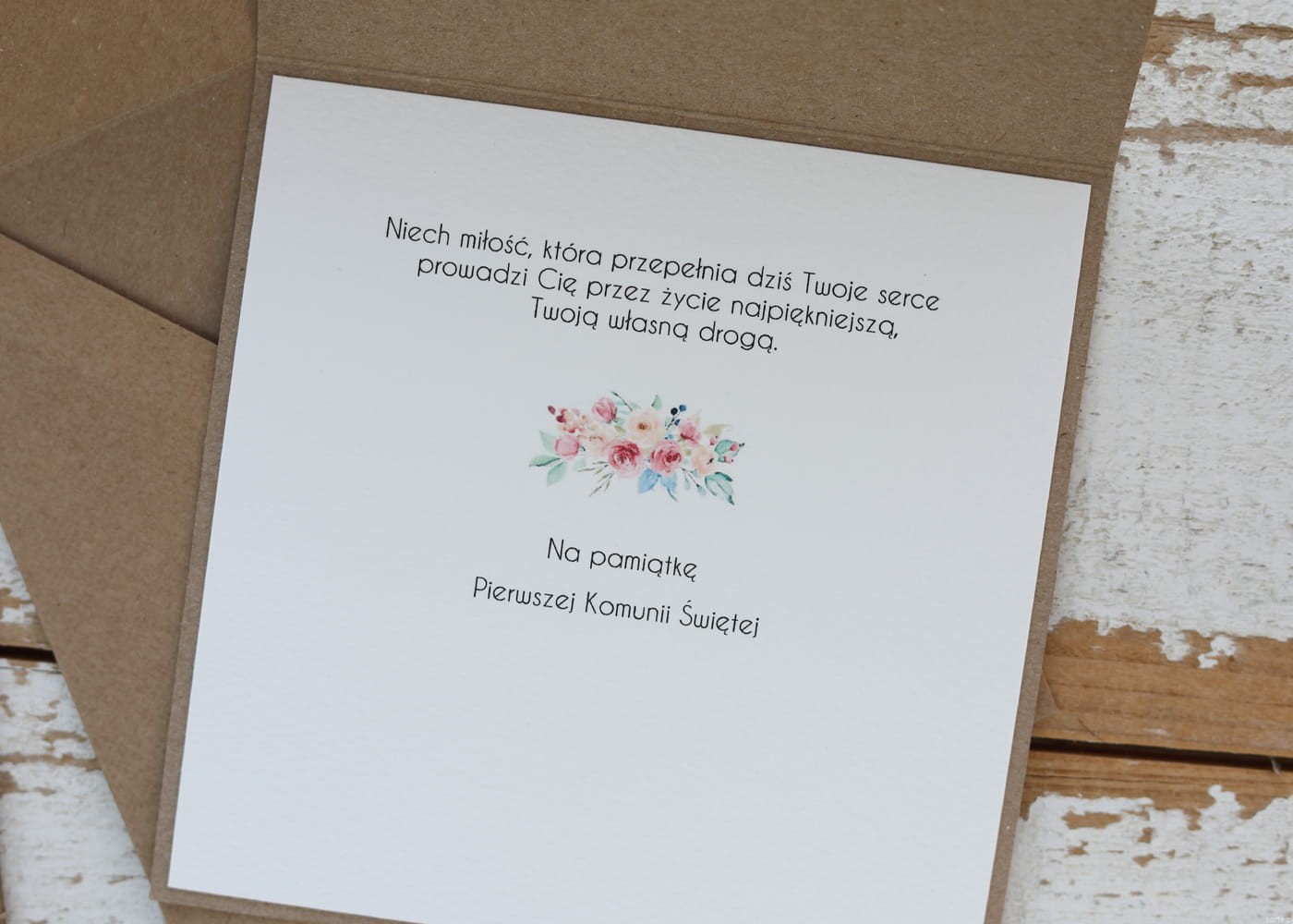 Wyjątkowa kartka na komunię, pamiątka komunii - prezent dla dziewczynki + najpiękniejsze życzenia