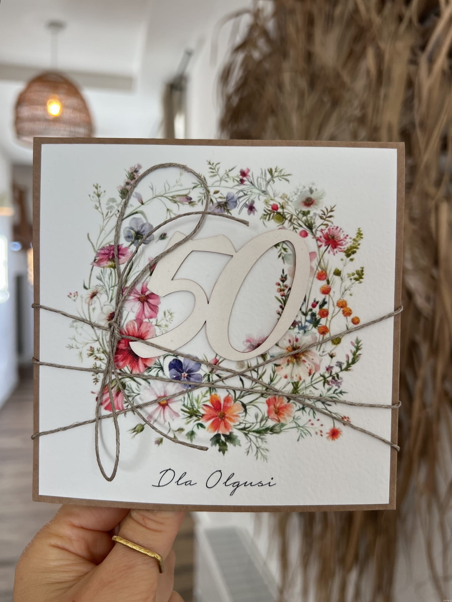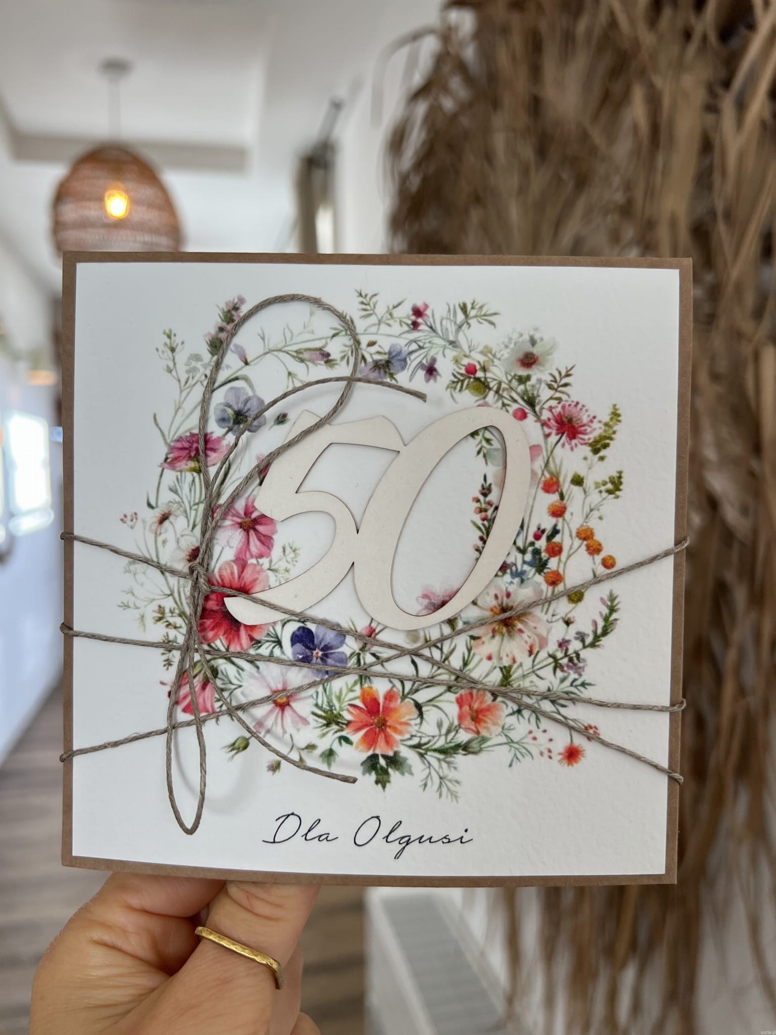 Wyjątkowa kartka ręcznie robiona na 50 urodziny prezent na pięćdziesiątkę z personalizacją najpiękniejsze życzenia urodzinowe